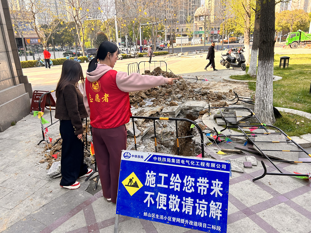 “居民反映施工時(shí)有噪聲、揚(yáng)塵大,對(duì)小區(qū)居民日常出行和居住環(huán)境造成了影響,施工方式能不能適當(dāng)調(diào)整?”自菱湖社區(qū)雨污分流管網(wǎng)改造工程開啟以來,社區(qū)網(wǎng)格員聯(lián)合物業(yè)定期對(duì)施工現(xiàn)場進(jìn)行巡查,結(jié)合居民反映的問題邀請(qǐng)施工方一起開展板凳議事會(huì),在不影響工程進(jìn)度的前提下將高噪音施工調(diào)整到非休息時(shí)段,嚴(yán)格落實(shí)濕法作業(yè),確保裸土覆蓋,同時(shí)保障單元門、車庫口等關(guān)鍵區(qū)域“快挖快回”,保障居民生活居住質(zhì)量。