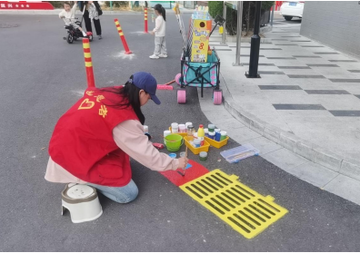 活動(dòng)現(xiàn)場(chǎng),志愿者們熱情高漲,帶著畫筆和顏料,以窨井蓋為畫布,發(fā)揮各自的創(chuàng)意和想象力。有的繪制了可愛的卡通形象,有的則畫出了美麗的環(huán)保宣傳和風(fēng)景,為社區(qū)增添了一抹亮麗的色彩。