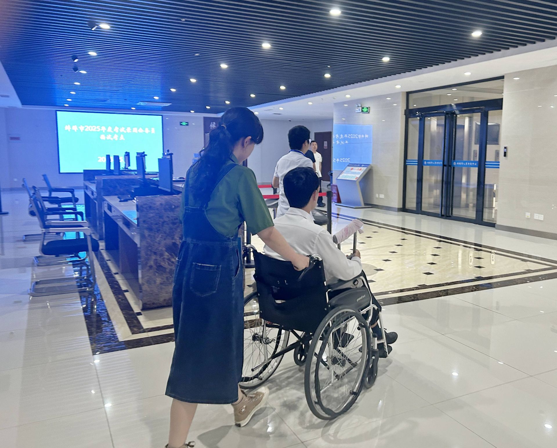 面試環(huán)節(jié)在延續(xù)溫馨提示、公安醫(yī)療聯(lián)動(dòng)保障的基礎(chǔ)上,創(chuàng)新開(kāi)通“暖心綠色通道”,為行動(dòng)不便考生提供全流程無(wú)障礙服務(wù)。在考點(diǎn)設(shè)立專屬行李寄存處,安排專人值守,實(shí)現(xiàn)外地考生行李“存—取”無(wú)縫對(duì)接,將制度保障與人文關(guān)懷深度融合。