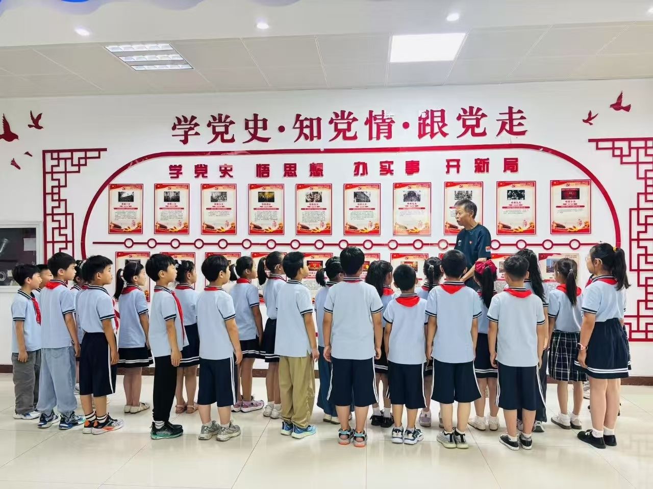 文竹苑社區(qū)紅色黨史學(xué)習(xí)教育長廊里,黃旭彬作為老兵宣講團(tuán)成員,以生動(dòng)形象的黨史故事為切入點(diǎn),帶領(lǐng)孩子們通過一張張照片了解黨史中的重大事件、重大成就和典型人物、動(dòng)人故事。通過沉浸式的黨史、黨情參觀學(xué)習(xí),孩子們更加深刻地認(rèn)識(shí)到胸前紅領(lǐng)巾的意義,紛紛表示要努力成為能夠擔(dān)當(dāng)民族復(fù)興大任的時(shí)代新人。