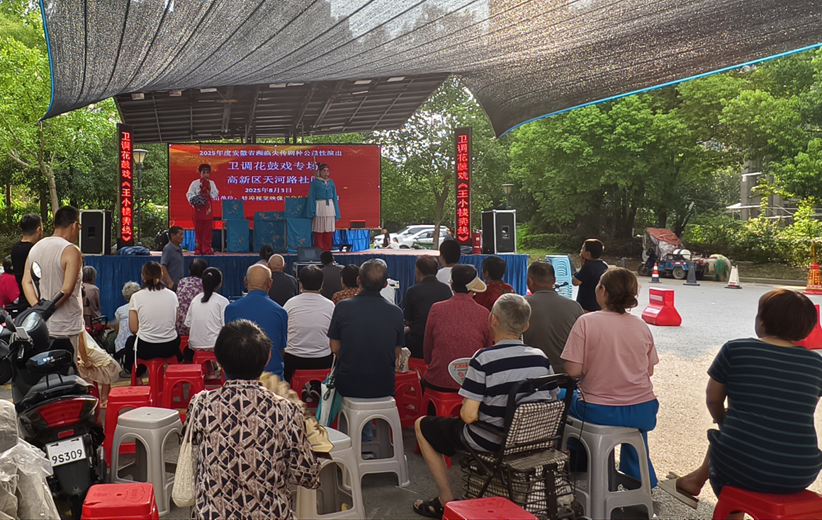 “王小樓清晨把線賣,聲聲吆喝繞亭臺(tái)……”伴隨著悠揚(yáng)的絲竹伴奏,衛(wèi)調(diào)花鼓戲《王小樓賣線》的經(jīng)典選段于近日在天河路社區(qū)柏仕公館文化廣場(chǎng)拉開帷幕。演員們身著色彩明艷的傳統(tǒng)戲服,唱腔婉轉(zhuǎn),將民間故事里的市井百態(tài)演繹得惟妙惟肖;隨后上演的《琵琶記》則以細(xì)膩的表演、動(dòng)人的情節(jié),傳遞出“孝親敬老”的傳統(tǒng)美德,臺(tái)下居民看得入神,不時(shí)響起陣陣掌聲。