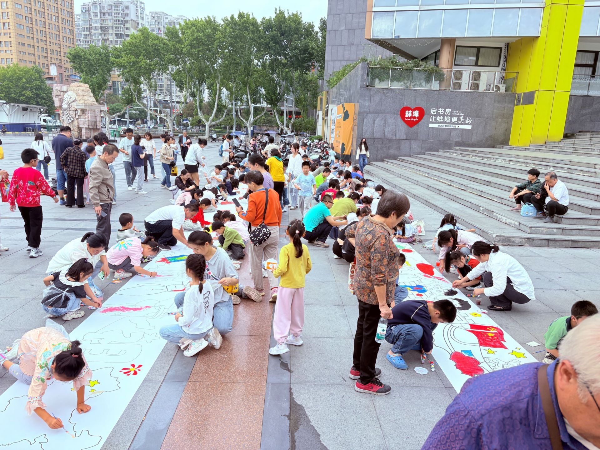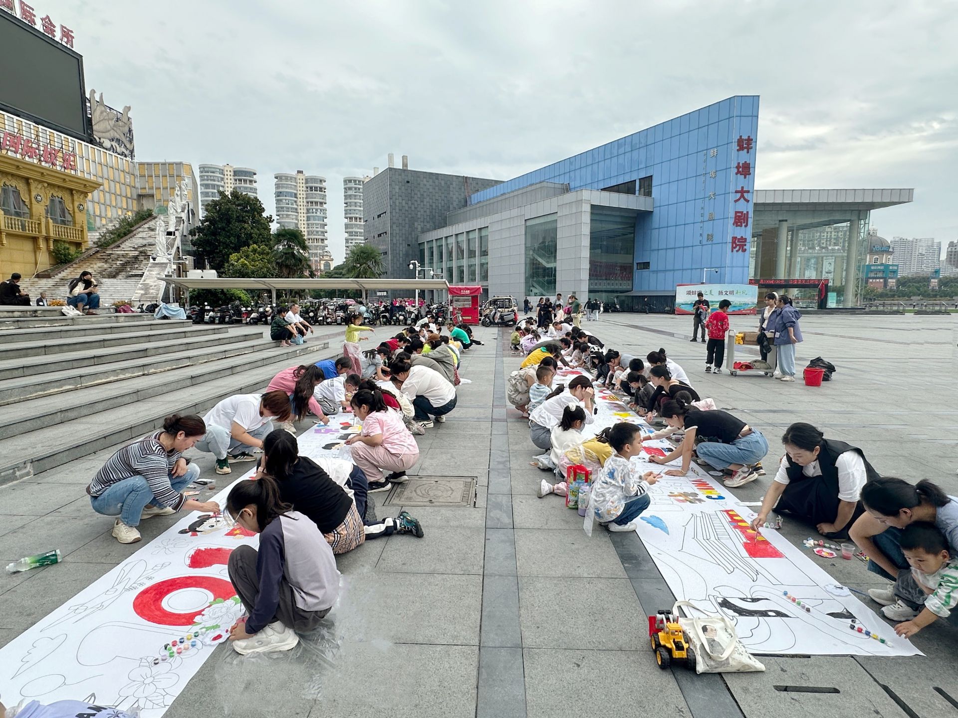 金秋送爽,丹桂飄香。10月1日下午,蚌埠市圖書(shū)館前,40米長(zhǎng)的潔白畫(huà)布如銀練般鋪開(kāi),近百位讀者齊聚一堂,以筆為媒、以彩為語(yǔ),將對(duì)祖國(guó)的真摯祝福傾注于筆墨之間。