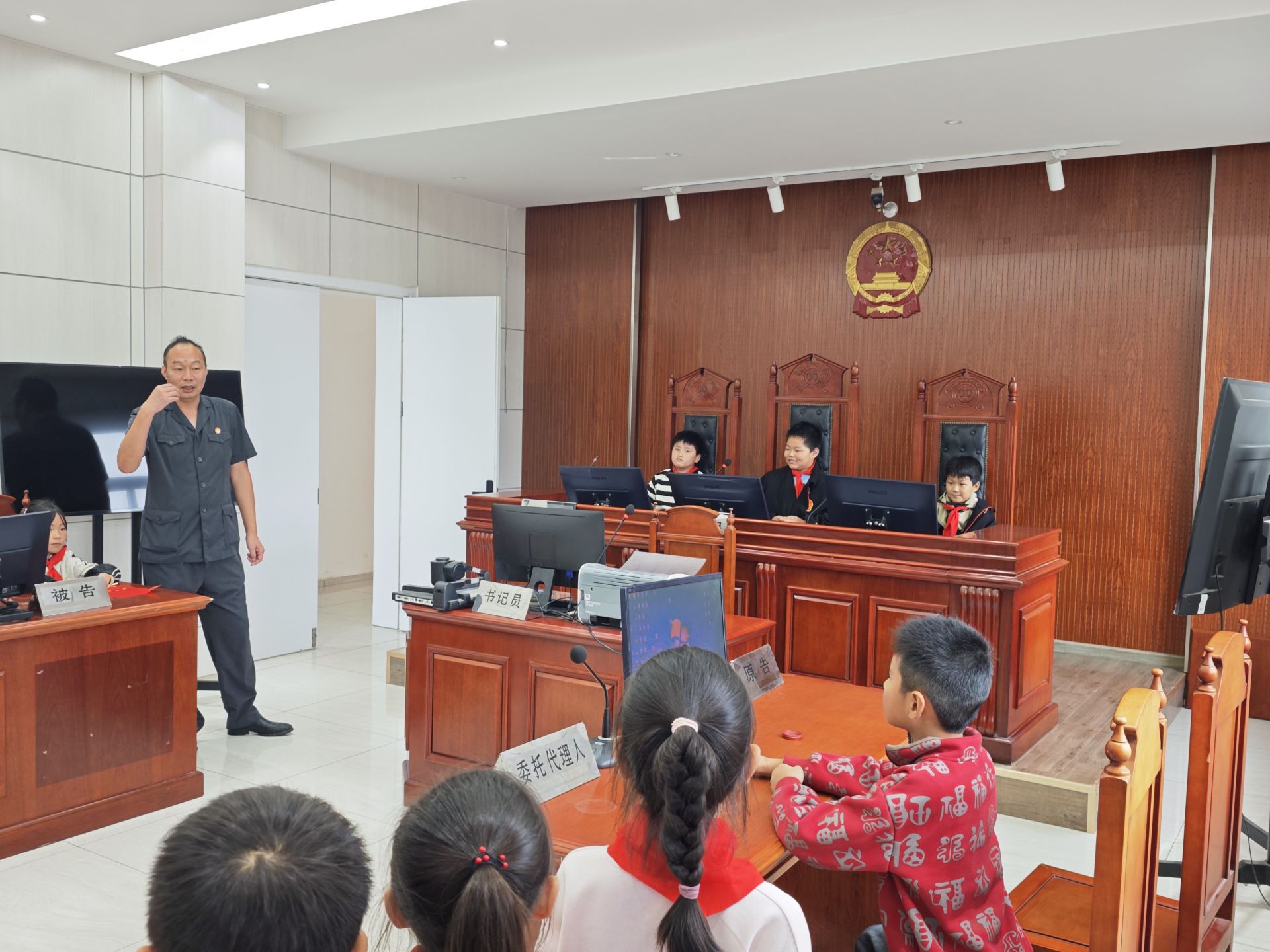 近日,懷遠(yuǎn)縣龍亢鎮(zhèn)界溝小學(xué)與高臺(tái)小學(xué)攜手,組織學(xué)生來到龍亢鎮(zhèn)法庭開展法治紅色教育研學(xué)活動(dòng),通過沉浸式體驗(yàn),將法治知識(shí)與紅色精神深度融入青少年成長過程中,為學(xué)生扣好人生“法治紐扣”、厚植家國情懷。