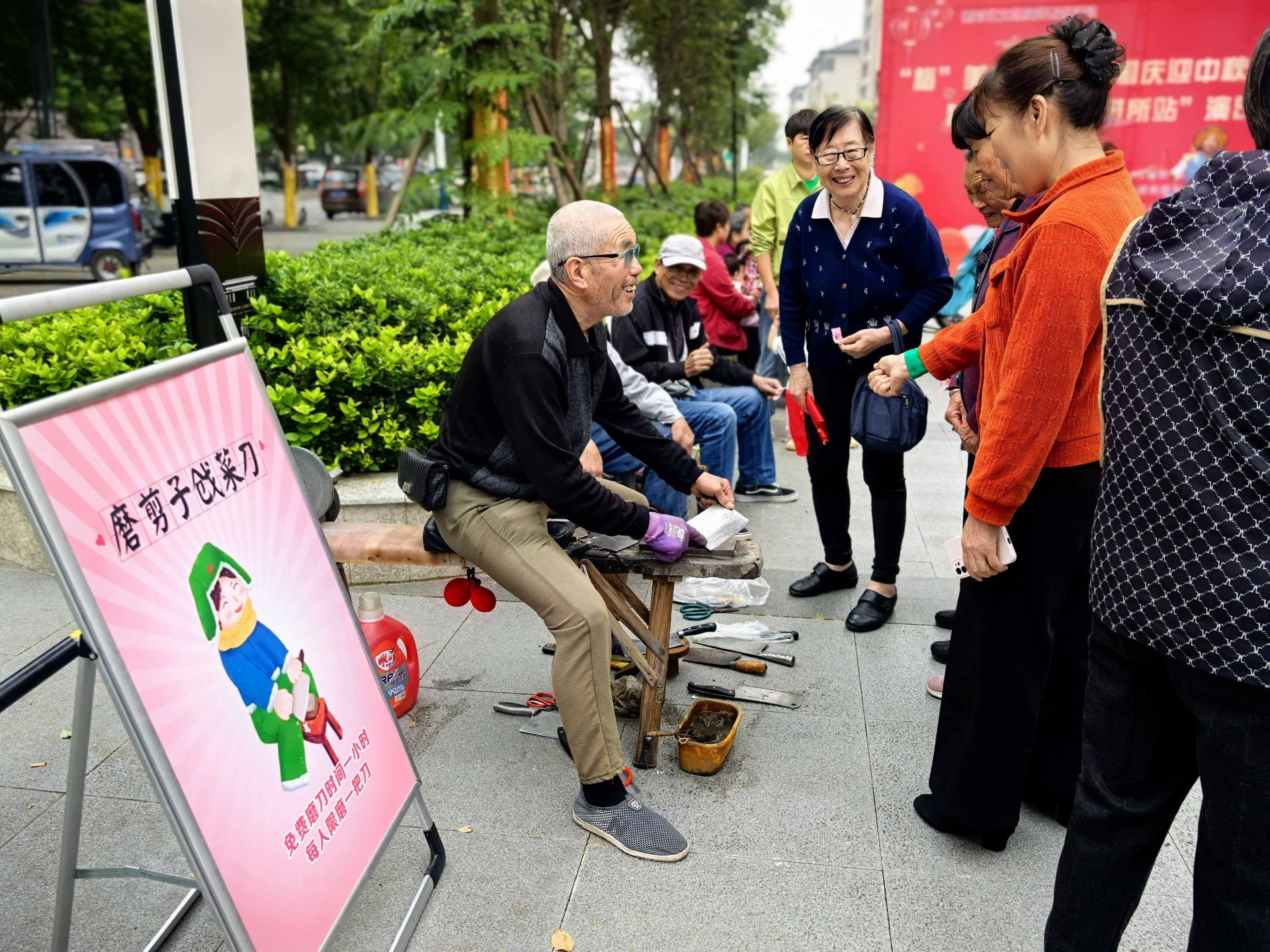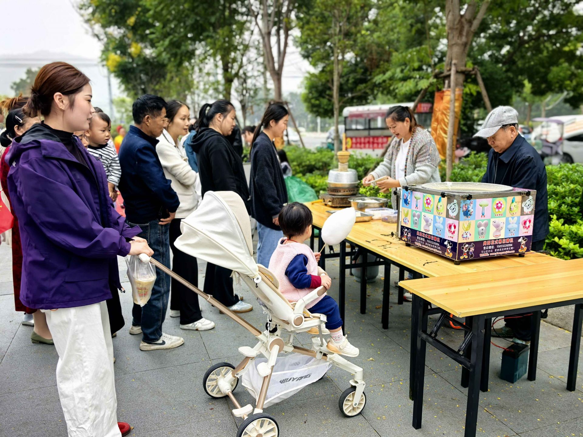 舞臺之外,便民服務(wù)與傳統(tǒng)文化體驗區(qū)同樣人氣高漲。“磨剪刀”便民點前排起長隊,老師傅嫻熟的手藝獲得居民連連稱贊。非遺項目“頂頂糕”和棉花糖攤位前圍滿了孩子與家長,大家不僅品嘗傳統(tǒng)美味,還在手藝人的指導(dǎo)下體驗制作過程,感受非遺文化的魅力。蔬菜“套圈”等趣味游戲也吸引了不少老年人踴躍參與?;顒蝇F(xiàn)場還同步開展了“有事找書記”平臺、男女平等、網(wǎng)絡(luò)安全等政策宣傳,社區(qū)工作人員通過發(fā)放宣傳冊、講解展板等形式,向居民進(jìn)行詳細(xì)介紹。