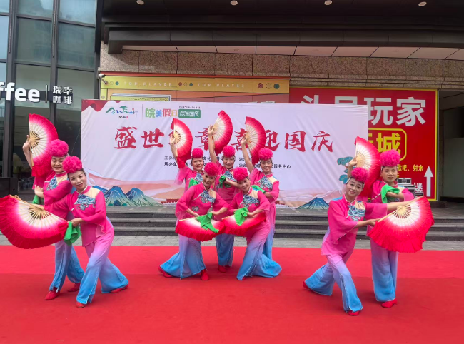 活動在熱鬧喜慶的花鼓燈表演中拉開帷幕,演員身著傳統(tǒng)服飾,以靈動的舞姿、歡快的節(jié)奏展現(xiàn)了非遺文化的獨(dú)特魅力。隨后節(jié)目輪番上演,亮點(diǎn)紛呈。女聲獨(dú)唱歌聲清亮激昂,歌手以真摯情感唱出對祖國山河的熱愛;團(tuán)體舞蹈用鮮艷的服飾、熱情的舞步,復(fù)刻紅色經(jīng)典,傳遞時代精神;時裝秀別出心裁,模特們身著華麗的紋樣服飾,邁著自信的步伐,將時尚與愛國情懷巧妙融合……最后電吹管合奏奏響全場最強(qiáng)音,熟悉的旋律響起,臺下居民自發(fā)跟唱,匯演在濃濃的愛國氛圍中活下帷幕。