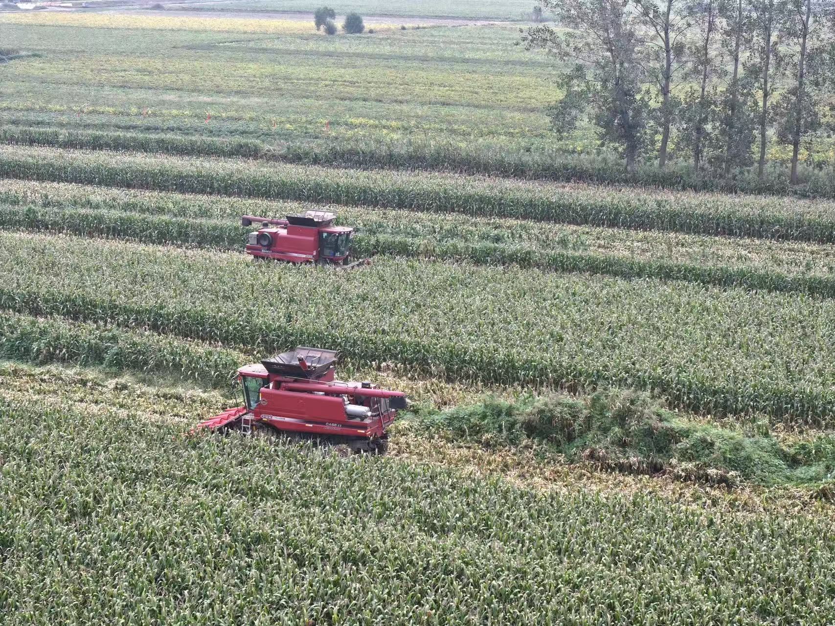 一臺(tái)臺(tái)大型收割機(jī)穿梭在玉米地里,收割機(jī)隆隆作響,收割、摘穗、脫粒一氣呵成,沉甸甸的高粱穗收割入倉(cāng),一派豐收繁忙景象。而剩余的秸稈則被同步粉碎,均勻地拋灑在田間,實(shí)現(xiàn)了秸稈還田,為來(lái)年的土地增肥添力。整個(gè)收割過(guò)程一氣呵成,高效且有序,原本需要大量人力和漫長(zhǎng)時(shí)間才能完成的收割工作,如今在這些現(xiàn)代化機(jī)械的助力下,變得輕松快捷。