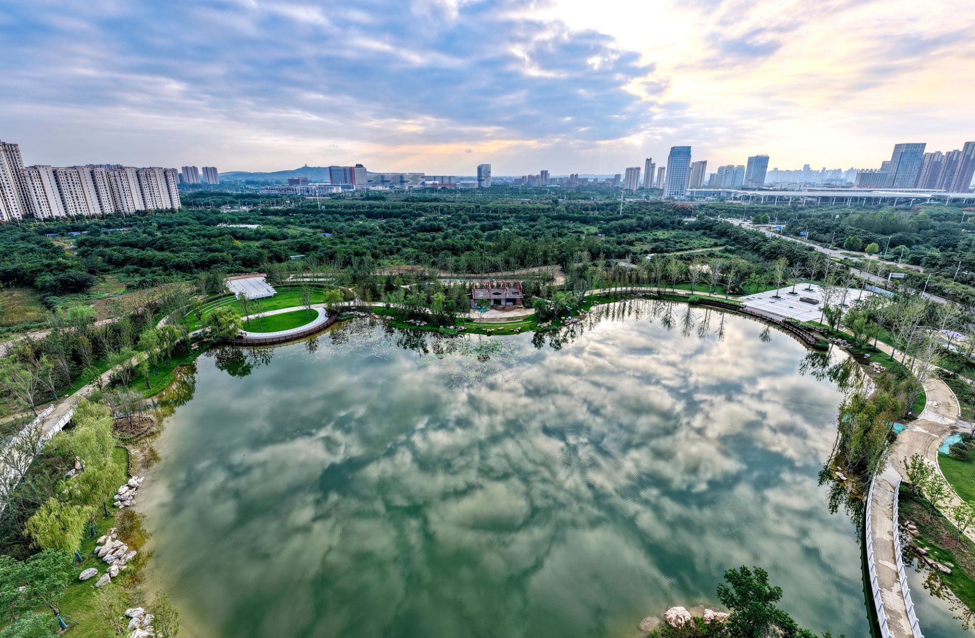 圖為蚌埠中央創(chuàng)新區(qū)水景觀公園秋色宜人。