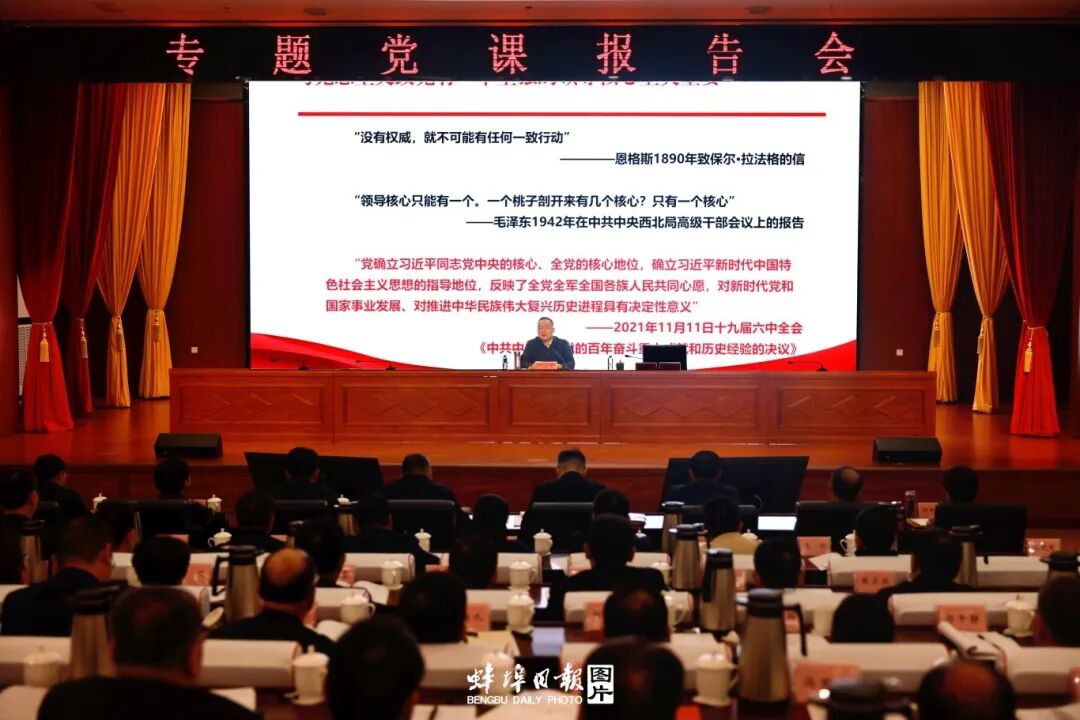10月20日上午,市委書記、市長馬軍到市委黨校,以“用黨的創(chuàng)新理論武裝頭腦、指導實踐、推動工作,加快蚌埠振興”為題,為黨校主體班學員作專題黨課報告。市委常委、宣傳部部長李波主持報告會。