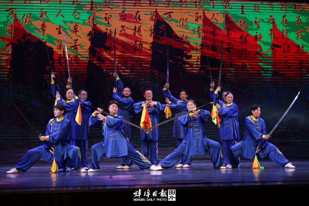 匯演現(xiàn)場氣氛熱烈,節(jié)目形式豐富多樣。器樂合奏《電影(地道站)組曲》,將觀眾帶入了抗日戰(zhàn)爭的崢嶸歲月,展示艱苦年代群眾的聰明智慧。反詐情景劇《假面親情》以快板+群口的方式揭露養(yǎng)老金詐騙陷阱,通過幽默與警示并重的表演,引發(fā)觀眾強烈共鳴。武術(shù)表演《萬勝苗刀百年傳承》,78歲高齡非遺傳承人帶領(lǐng)弟子們嫻熟的武藝表演、矯健的身影讓人過目難忘。詩朗誦《特殊的情懷》謳歌了蚌埠市駐地企業(yè)核工業(yè)二二公司職工為中國的國防事業(yè)努力和無悔奉獻。舞蹈《蘭花賦》以優(yōu)美的舞姿將花鼓燈技藝的熱烈奔放展現(xiàn)的淋漓盡致。參演者平均年齡65歲以上,他們以飽滿的精神狀態(tài)和專業(yè)的舞臺表現(xiàn),贏得臺下陣陣掌聲,觀眾們紛紛用手機記錄下這些精彩瞬間。