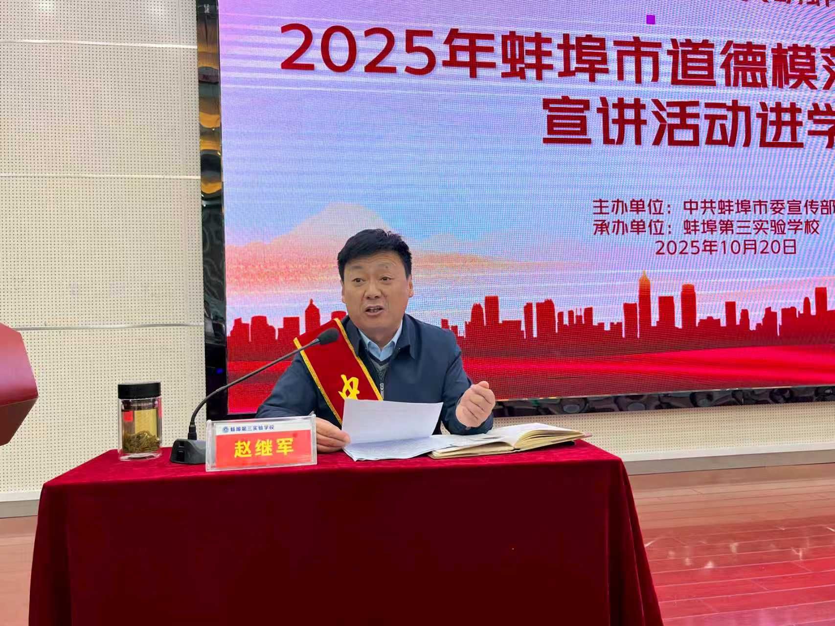 近日,2025年蚌埠市道德模范、身邊好人宣講活動走進(jìn)蚌埠第三實(shí)驗(yàn)學(xué)校,中國好人趙繼軍為師生們帶來了一堂關(guān)于“愛與成長”的公益課。