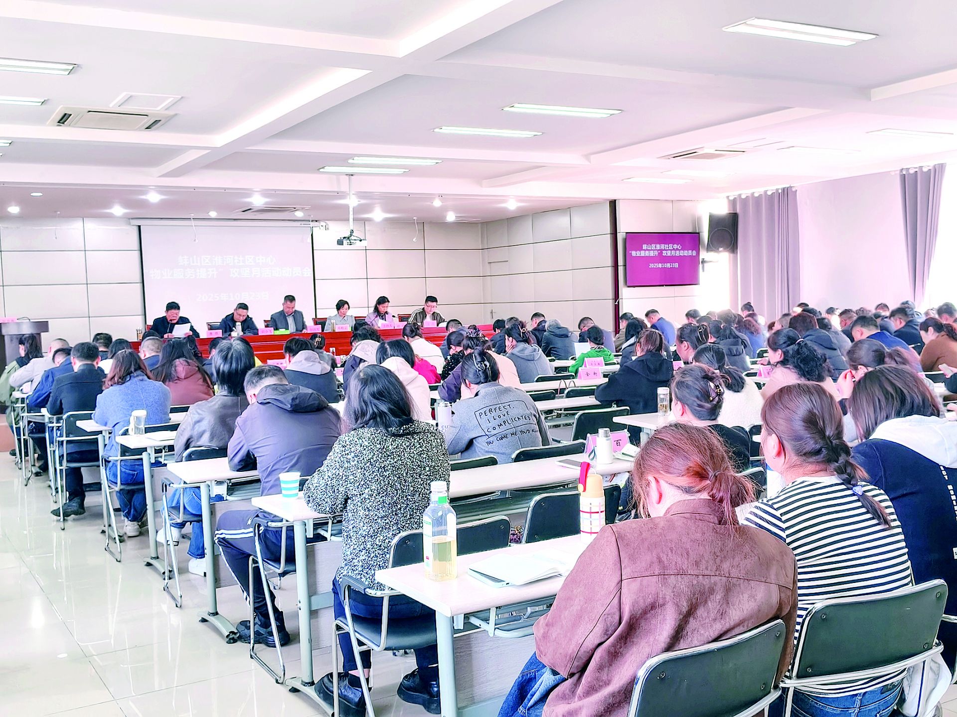 為全面提升轄區(qū)物業(yè)管理服務(wù)水平,切實增強(qiáng)居民幸福感與滿意度,10月23日下午,蚌山區(qū)淮河社區(qū)中心召開“物業(yè)服務(wù)提升”攻堅月行動動員會。會議在總結(jié)1—9月份物業(yè)管理工作基礎(chǔ)上,正式啟動“物業(yè)服務(wù)提升”攻堅月專項行動。蚌埠市住建局、市物業(yè)專班、蚌山區(qū)物業(yè)辦等相關(guān)部門負(fù)責(zé)人出席會議,淮河社區(qū)中心班子成員、各社區(qū)負(fù)責(zé)人、執(zhí)法中隊及轄區(qū)物業(yè)企業(yè)負(fù)責(zé)人等參會。