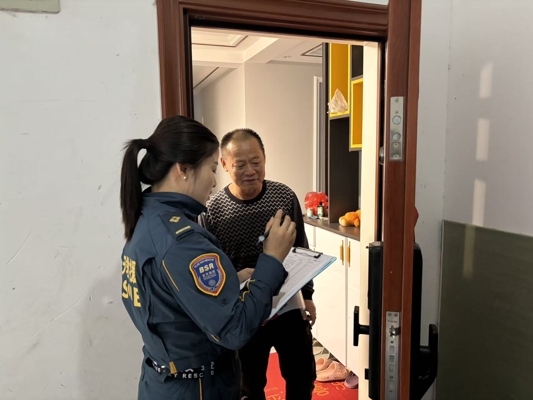 藍(lán)天救援隊(duì)累計(jì)協(xié)助完成12000余戶居民的上門宣傳工作,發(fā)放宣傳貼12000余張,覆蓋群眾37000余人次,有效填補(bǔ)了社區(qū)宣傳人手不足的缺口?!澳銈兩祥T宣傳太及時(shí)了!之前總刷到兼職廣告,現(xiàn)在知道怎么分辨了!”“小伙子講得特別清楚,還幫我教育小孫子不能相信免費(fèi)送游戲皮膚的噱頭,現(xiàn)在我心里更踏實(shí)了!”居民們的認(rèn)可與稱贊,成為此次宣傳行動(dòng)的暖心注腳。不少住戶主動(dòng)邀請(qǐng)隊(duì)員進(jìn)門歇歇腳、喝口水,鄰里間的溫情互動(dòng)讓反詐宣傳更有溫度。