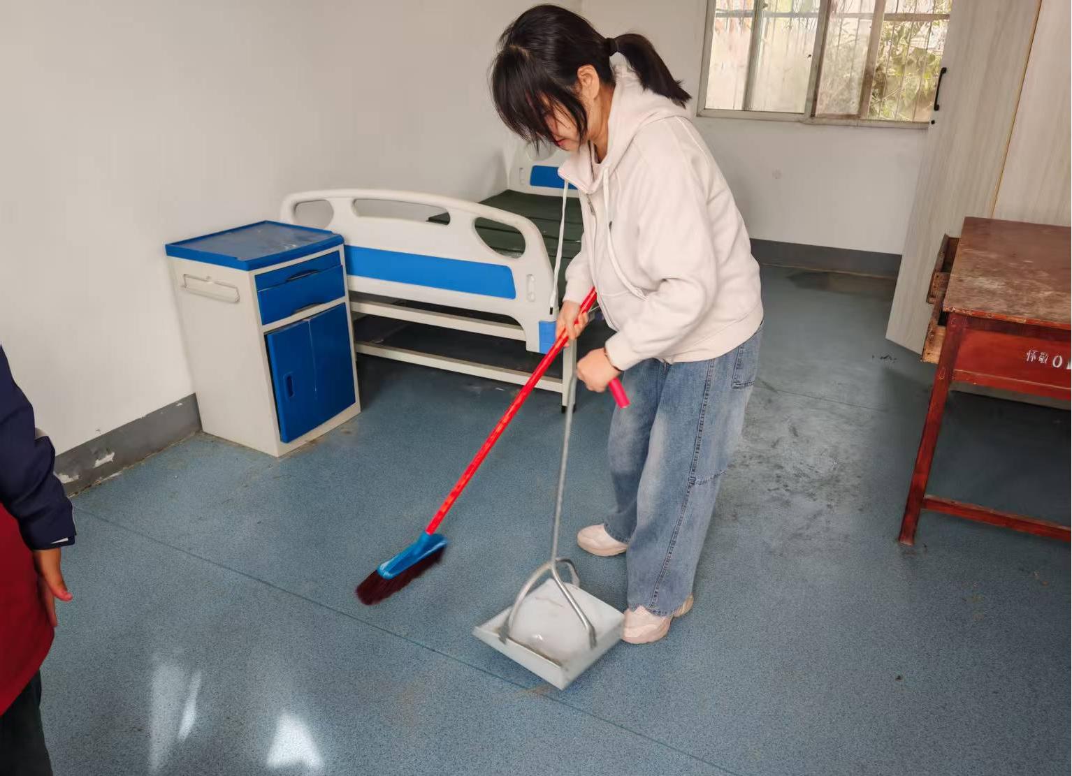 抵達(dá)敬老院后,師生們迅速分為“環(huán)境清潔組”“陪伴交流組”開展服務(wù)?!碍h(huán)境清潔組”的學(xué)生手持掃帚、抹布,細(xì)致清掃老人宿舍地面,擦拭窗臺(tái)、床頭柜等家具,連墻角的灰塵、窗戶縫隙的污垢都不放過(guò)。“陪伴交流組”的師生圍坐老人身邊,聆聽(tīng)老人講述過(guò)去的生活故事,詢問(wèn)老人秋冬季節(jié)的保暖情況,溫馨的話語(yǔ)讓敬老院里充滿了歡聲笑語(yǔ)。