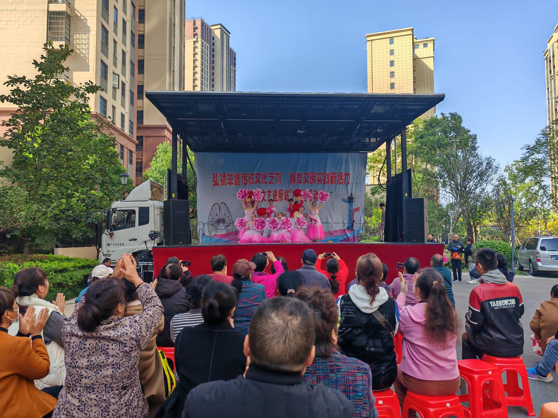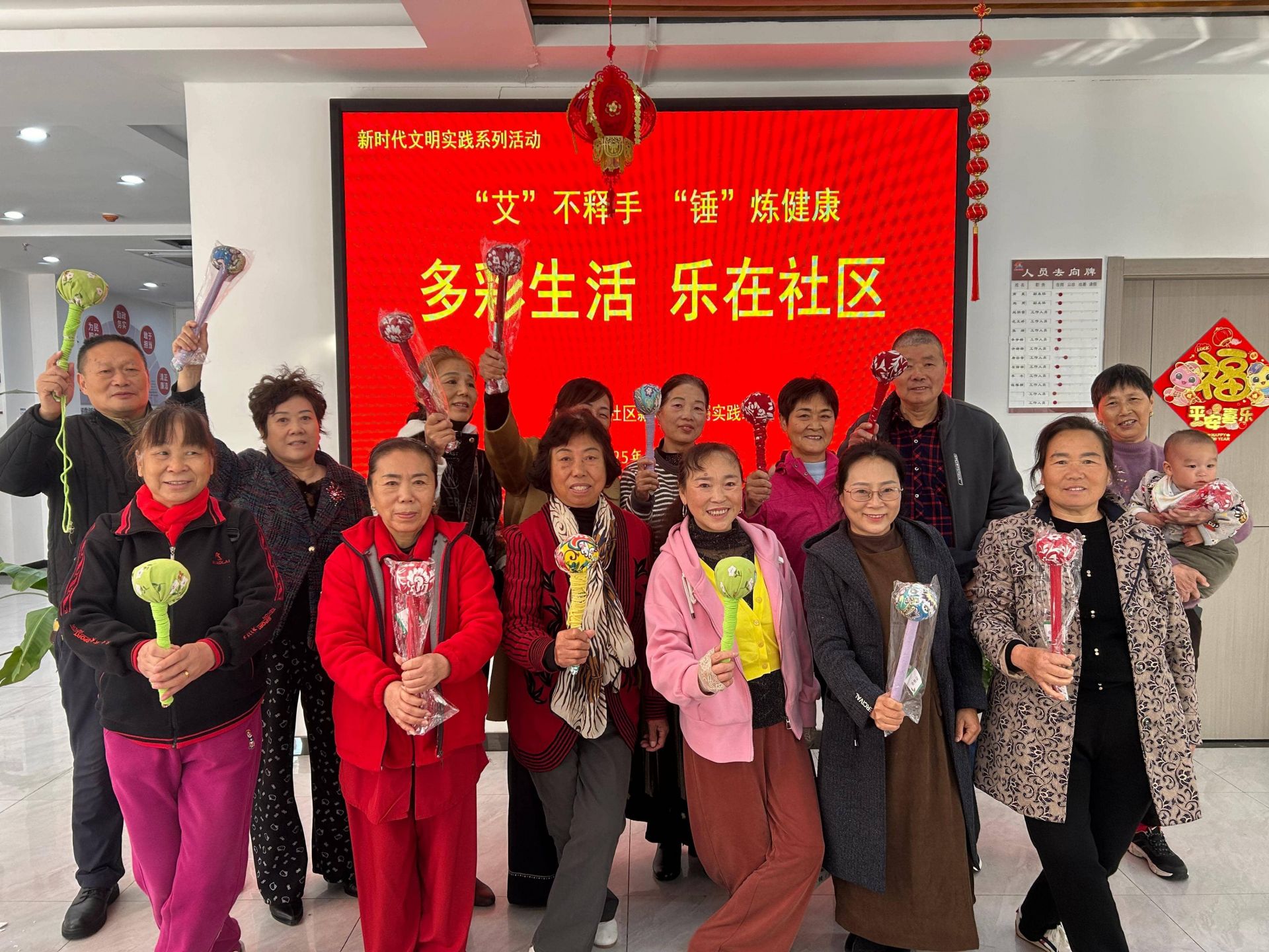 上午9點(diǎn)剛過(guò),社區(qū)小廣場(chǎng)的戲臺(tái)前便坐滿了人。安徽省花鼓燈歌舞劇院的演員歌聲婉轉(zhuǎn)悠揚(yáng),黃梅戲《天女散花》的調(diào)子回蕩在人群中——“采得鮮花到人世,好分春色到凡塵”,熟悉的鄉(xiāng)音裹著淮河兩岸的煙火氣,讓張奶奶跟著哼起了腔。小手裹著軟軟的艾草,來(lái)自山香方格子幼兒園的小朋友們正跟著社區(qū)工作人員折布、填絨,把秋陽(yáng)的暖、艾草的柔,都纏進(jìn)彩繩里?!斑@是給爺爺奶奶的禮物!”梳小辮的小朋友舉著艾草錘,把尊敬老人的品德深深刻在心里。
