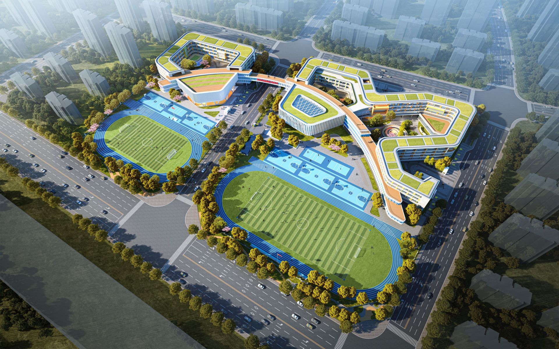 記者從蚌埠市自然資源和規(guī)劃局空間規(guī)劃科獲悉,該學(xué)校以“樹”為設(shè)計(jì)主題,將校園整體布局喻為一棵茁壯成長的大樹。值得一提的是,校園中間由正德路自然分為兩個(gè)校區(qū),并通過活力連廊緊密相連,形成“一校兩區(qū)、廊橋共生”的獨(dú)特格局。建筑通過曲線連廊與開放平臺串聯(lián)起教學(xué)區(qū)、活動區(qū)與運(yùn)動場,形成多層次、多維度的學(xué)習(xí)與交流空間。學(xué)生們將在如“樹冠”般舒展的環(huán)境中,感受知識的滋養(yǎng)與成長的活力。