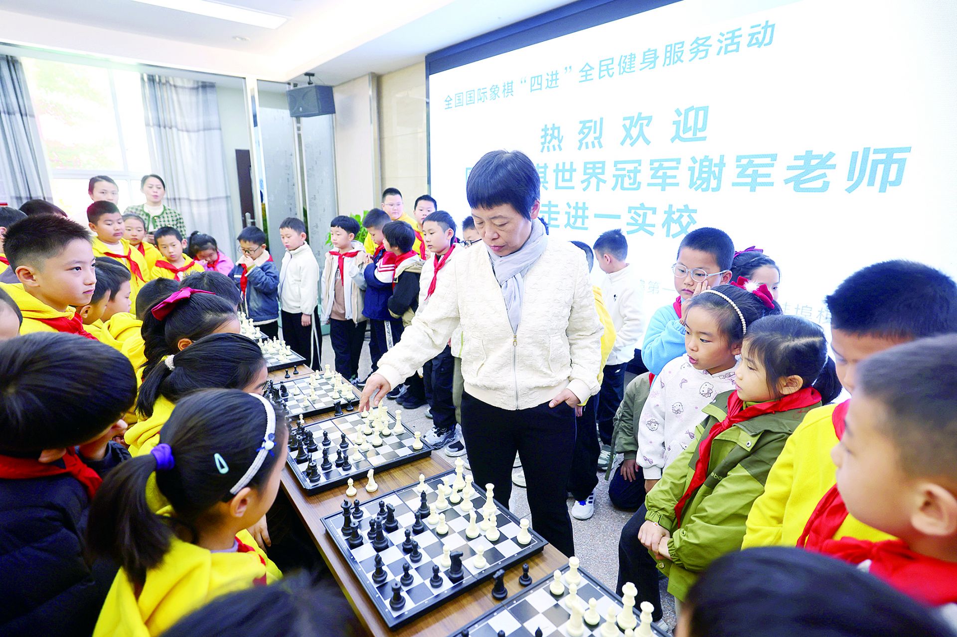 11月3日上午,安徽省蚌埠第一實(shí)驗(yàn)學(xué)校的會(huì)議室里,清脆的棋盤落子聲此起彼伏。四屆女子國(guó)際象棋世界冠軍、中國(guó)國(guó)際象棋協(xié)會(huì)會(huì)長(zhǎng)謝軍,正與該校學(xué)生展開一場(chǎng)精彩的“車輪戰(zhàn)”對(duì)弈。這場(chǎng)一對(duì)多的實(shí)戰(zhàn)交流,是全國(guó)國(guó)際象棋“四進(jìn)”(進(jìn)學(xué)校、進(jìn)社區(qū)、進(jìn)機(jī)關(guān)、進(jìn)養(yǎng)老機(jī)構(gòu))全民健身志愿服務(wù)活動(dòng)落地蚌埠的生動(dòng)縮影。