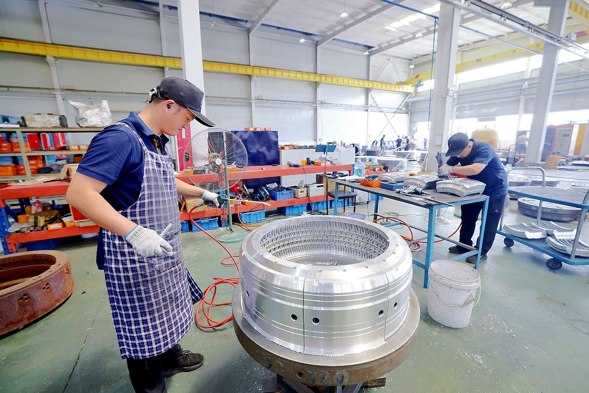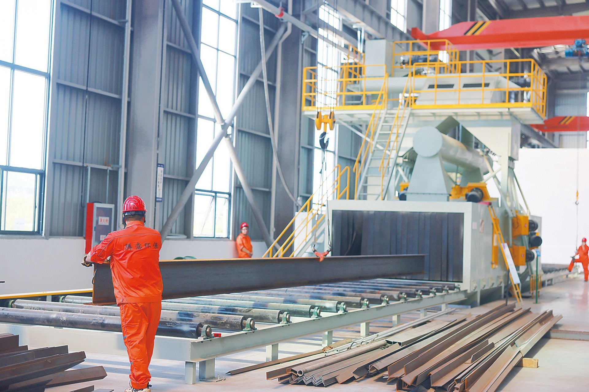 騰意新型環(huán)保裝備生產(chǎn)基地項目現(xiàn)場,員工趕制訂單產(chǎn)品。