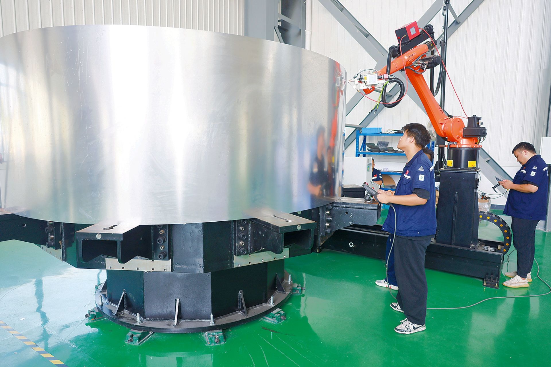 深藍(lán)航空液體火箭智能制造基地建設(shè)項目現(xiàn)場,員工加工關(guān)鍵零部件。