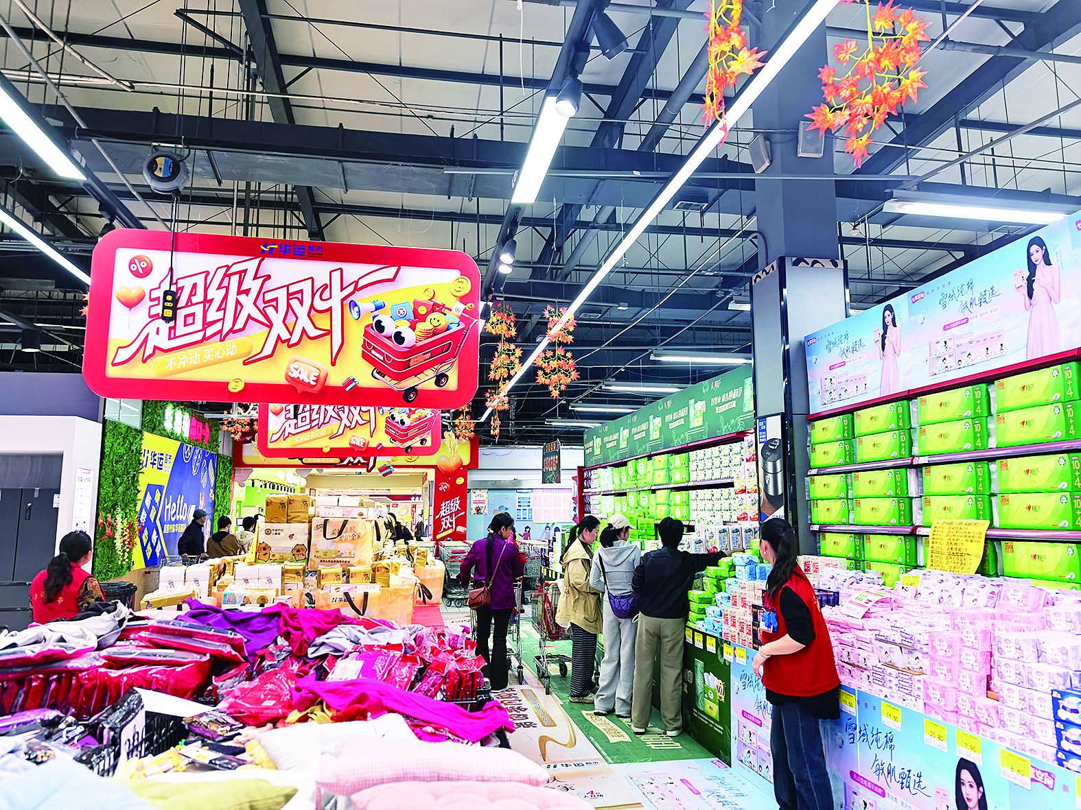 面對線上平臺的競爭,蚌埠本地商家積極探索線上線下聯(lián)動的路徑。華運超市結(jié)合滿100元減20、滿200元減40的政府補貼消費券,組織了各種線上線下活動,實現(xiàn)引流。超市負責人表示,趕上秋冬季家居服、棉服、保暖內(nèi)衣等銷售旺季,近期的客單價比平時上漲5%左右。為了增加與年輕消費者的粘性,華運超市還聯(lián)合京東推出了衛(wèi)生紙、洗衣液等產(chǎn)品的線上下單、門店提貨直接減的活動。