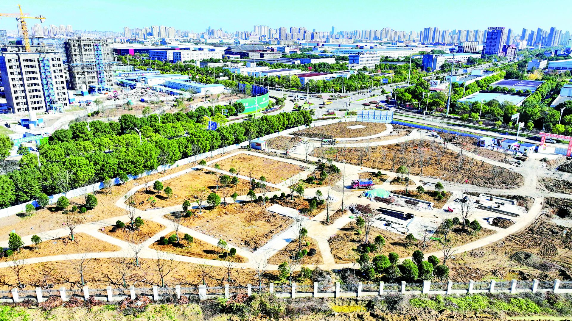 11月11日,中國(安徽)自由貿(mào)易試驗區(qū)蚌埠片區(qū)體育公園,建筑工人正在施工作業(yè),整個園區(qū)建設(shè)規(guī)模初顯(無人機照片)。該項目位于高新區(qū)黃山大道與大慶路交會處,整體由A、B兩個地塊組成,總占地面積約54742平方米,南北兩側(cè)地塊通過人行道連通。項目結(jié)合場地原有地形,通過“悅動綠脈”景觀軸線串聯(lián)起生態(tài)綠化區(qū)、體育健身設(shè)施區(qū)及智慧停車區(qū)三大功能板塊,推動綠色空間與健身設(shè)施深度融合。按照目前的施工進度,預(yù)計明年春季具備全面開放條件。(劉晨)