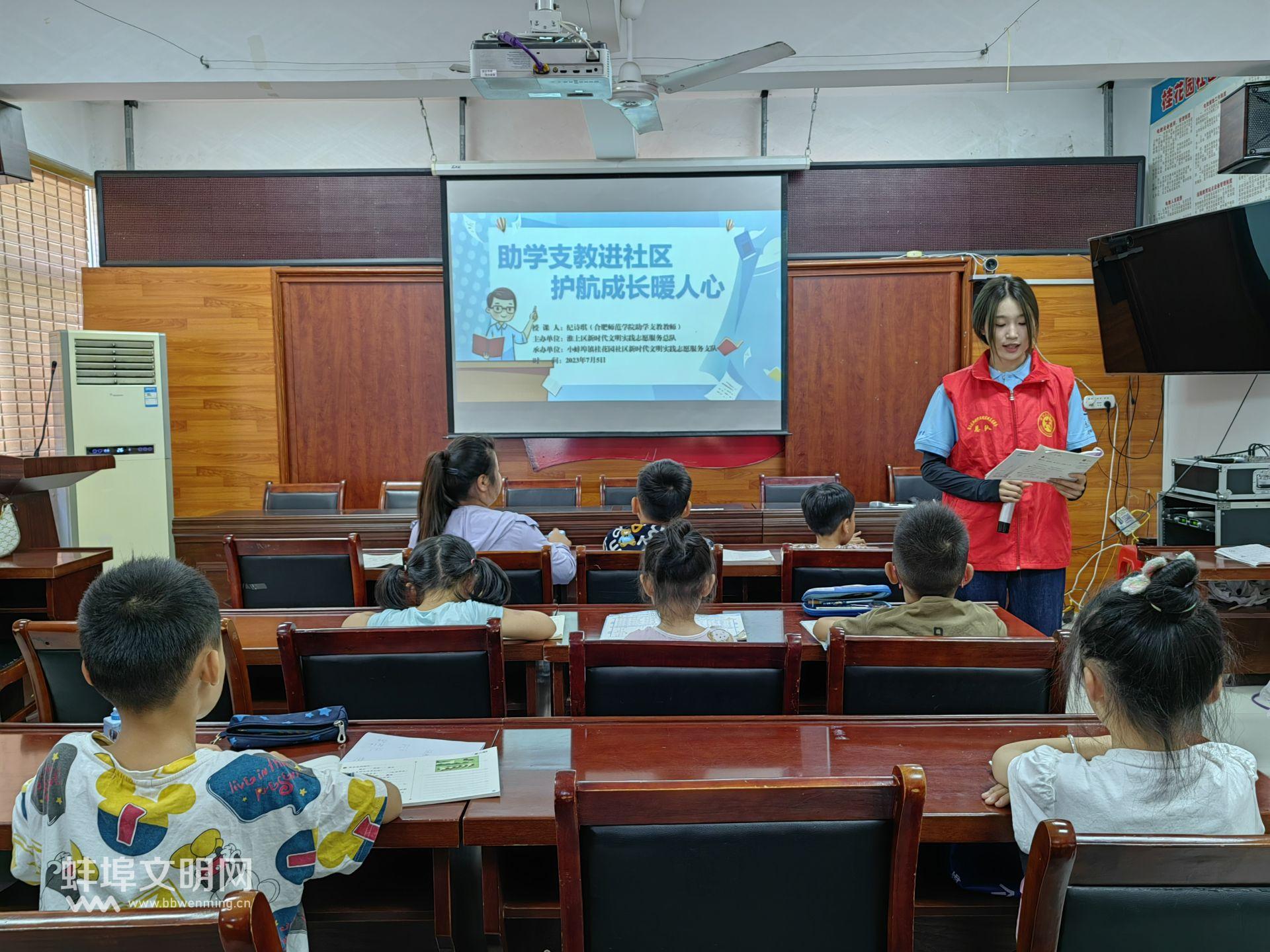 蚌埠文明網(wǎng)訊 為進(jìn)一步弘揚(yáng)“奉獻(xiàn)、友愛、互助、進(jìn)步”的志愿服務(wù)精神,豐富轄區(qū)少年兒童的暑期生活,促進(jìn)少年兒童健康成長(zhǎng)、全面發(fā)展。近日,由淮上區(qū)新時(shí)代文明實(shí)踐志愿服務(wù)總隊(duì)主辦,小蚌埠鎮(zhèn)桂花園社區(qū)新時(shí)代文明實(shí)踐志愿服務(wù)支隊(duì)承辦的“行知學(xué)堂,開課啦”!暨“助學(xué)支教進(jìn)社區(qū),護(hù)航成長(zhǎng)暖人心”志愿服務(wù)學(xué)堂在小蚌埠鎮(zhèn)桂花園社區(qū)開班。