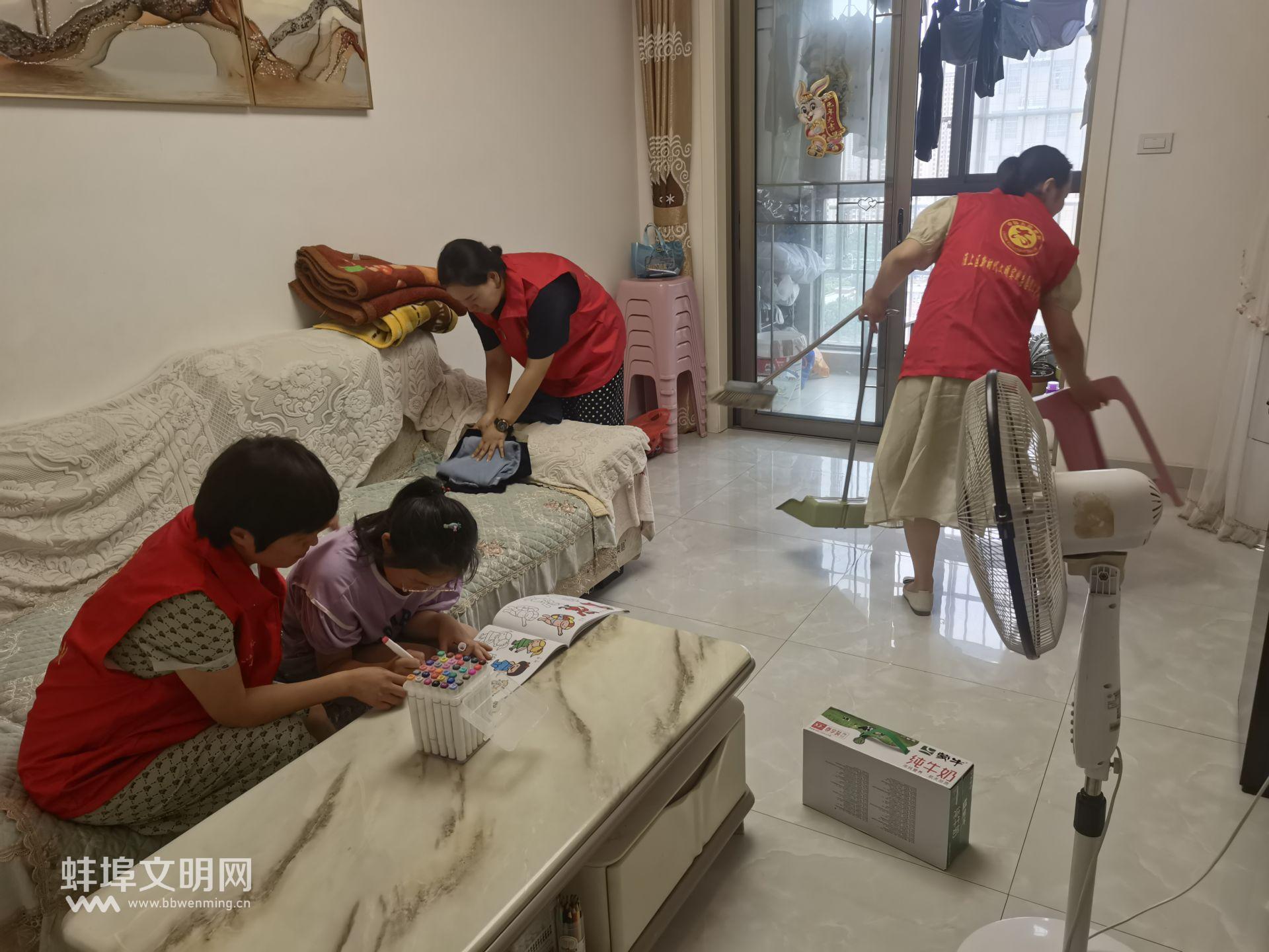 圖為志愿者陪兒童畫(huà)畫(huà)幫整理家務(wù)