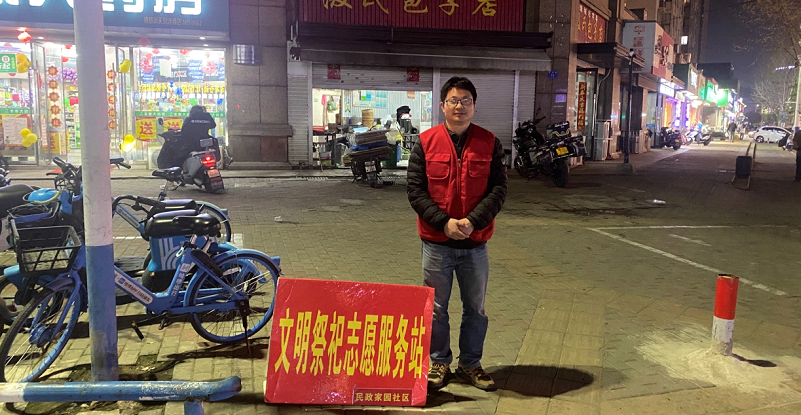在清明節(jié)來臨之際,民政家園社區(qū)組織在職黨員志愿者開展清明節(jié)文明祭祀活動(dòng),黨員們充分發(fā)揮了先鋒模范帶頭作用。在職黨員志愿者們在轄區(qū)路段拿小喇叭向廣大居民宣傳文明祭祀,號(hào)召居民文明祭祀時(shí)不要放鞭炮、焚香燒紙,避免火災(zāi),提倡居民們用網(wǎng)上祭祀等健康時(shí)尚的方式祭奠先烈、緬懷親人。