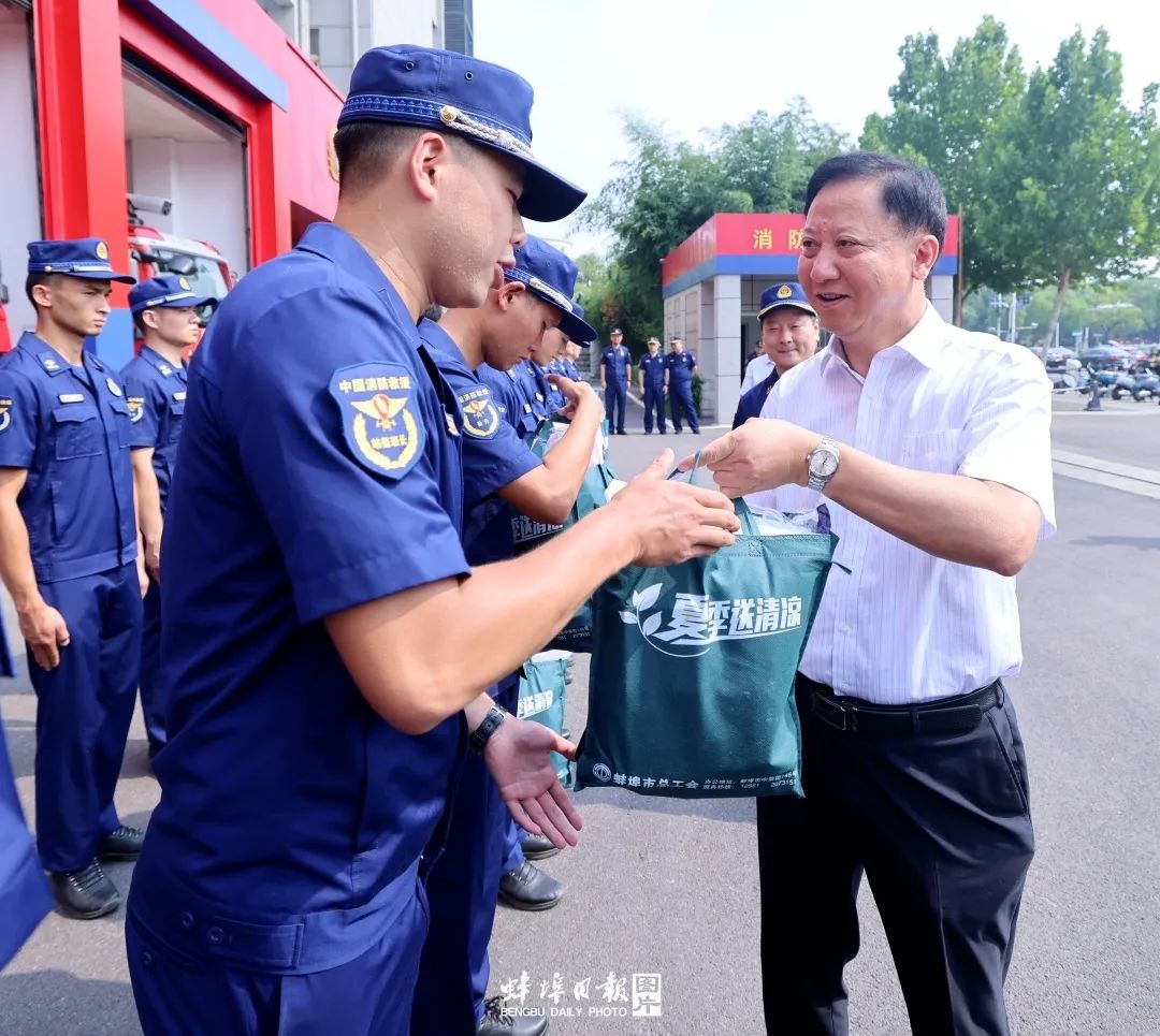 蚌埠文明網(wǎng)訊 8月11日上午,市委書(shū)記黃曉武開(kāi)展高溫“送清涼”慰問(wèn)活動(dòng),看望奮戰(zhàn)在高溫一線的廣大勞動(dòng)者、行政執(zhí)法人員和消防救援指戰(zhàn)員,對(duì)他們的辛勤付出致以崇高敬意和衷心感謝。市領(lǐng)導(dǎo)楊森、郭家滿參加。