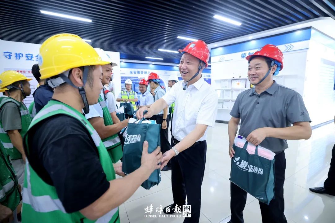 “來(lái)自全國(guó)各地的建設(shè)者們戰(zhàn)高溫、斗酷暑,加快推進(jìn)項(xiàng)目建設(shè),積極助力蚌埠發(fā)展,大家辛苦了?!痹诎鲠t(yī)一附院心腦血管中心項(xiàng)目部,黃曉武實(shí)地察看項(xiàng)目建設(shè)進(jìn)展和智慧工地等運(yùn)用情況,并向廣大一線建筑工人和項(xiàng)目部工作人員的辛勤勞動(dòng)和默默堅(jiān)守表示感謝,希望大家在項(xiàng)目建設(shè)中既保證工程進(jìn)度、工程質(zhì)量、工程安全,也要切實(shí)做好個(gè)人防護(hù)。