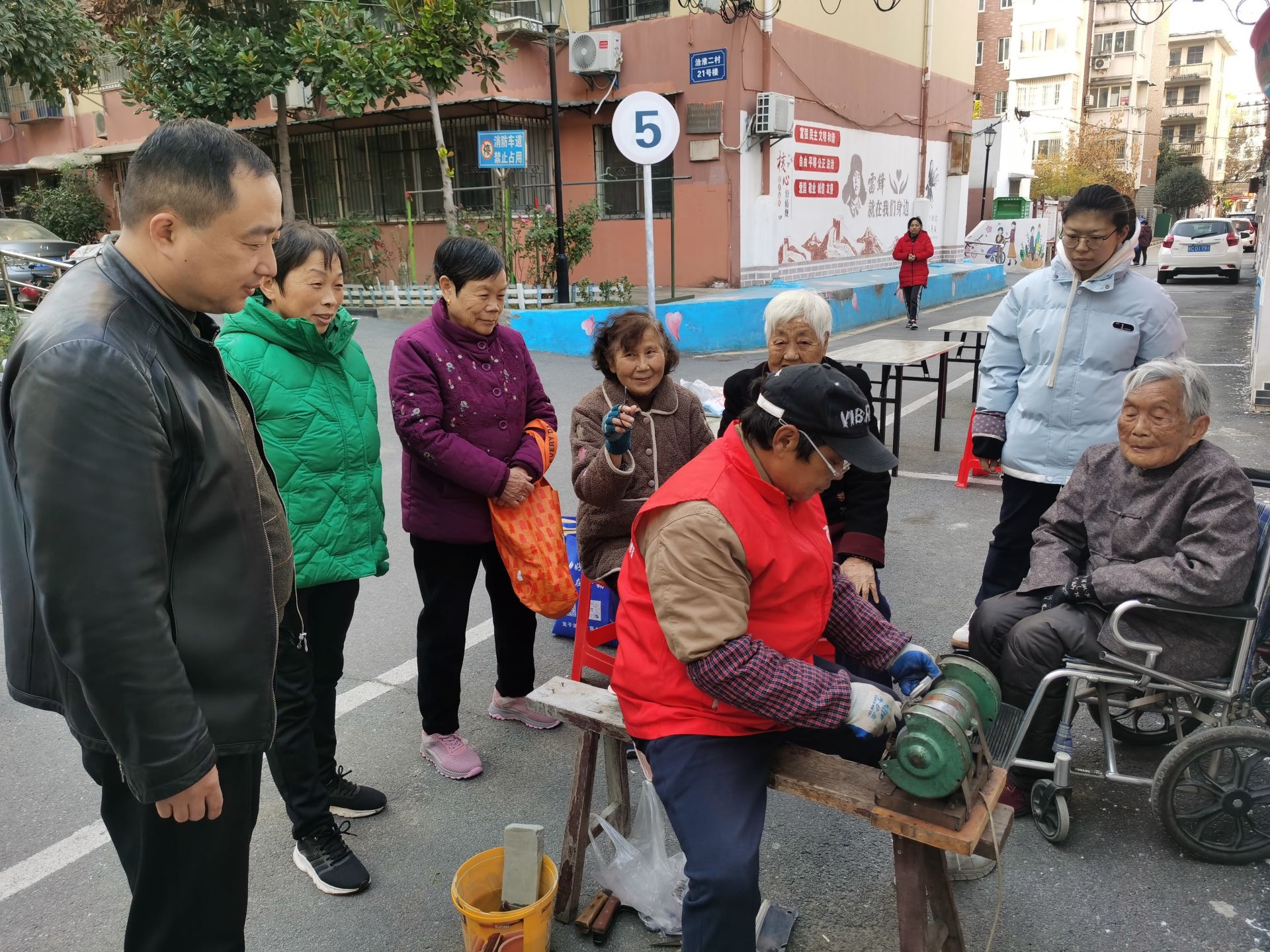 在轄區(qū)治淮二村活動(dòng)現(xiàn)場(chǎng),志愿者為居民帶來(lái)免費(fèi)理發(fā)、血糖血壓測(cè)量、磨刀、家庭醫(yī)生健康坐診等多項(xiàng)公益服務(wù),還有“光盤(pán)行動(dòng)”、垃圾分類(lèi)、居家燃?xì)獍踩⒎鲤B(yǎng)老詐騙等知識(shí)宣傳,讓居民群眾實(shí)實(shí)在在獲得實(shí)惠。