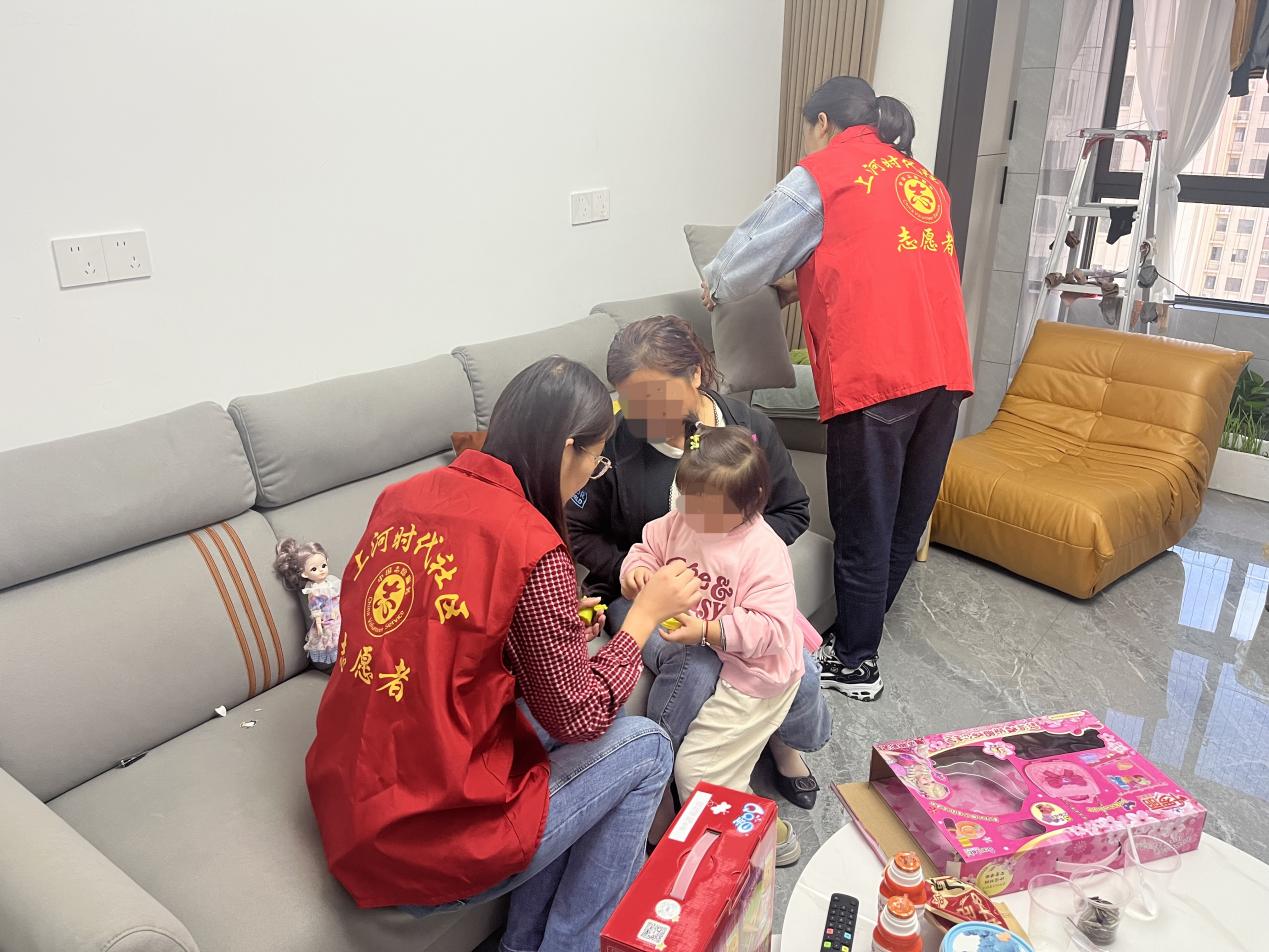 志愿者到留守兒童家中,為孩子們送去益智玩具、牛奶等慰問品,詳細(xì)了解留守兒童的生活情況以及身體健康,叮囑監(jiān)護(hù)人需看護(hù)好孩子,嚴(yán)禁兒童到水池游玩,手機(jī)也要每天規(guī)定娛樂時間,以防過度用眼影響兒童身心健康。隨后,志愿者與留守兒童在遠(yuǎn)方的父母進(jìn)行通話,告知兒童在家的情況,讓他們在外安心工作,有需要幫助的可以隨時聯(lián)系網(wǎng)格員。社區(qū)圍繞“一小”積極開展各類關(guān)愛未成年人活動,如開展傳承書畫、剪紙等傳統(tǒng)文化教育,以及安全知識講座、防溺水宣傳、“護(hù)苗·綠書簽行動”等系列關(guān)愛未成年人活動,并為未成年人提供作業(yè)輔導(dǎo)、健康教育等服務(wù),凝聚起關(guān)心下一代工作的強(qiáng)大合力。