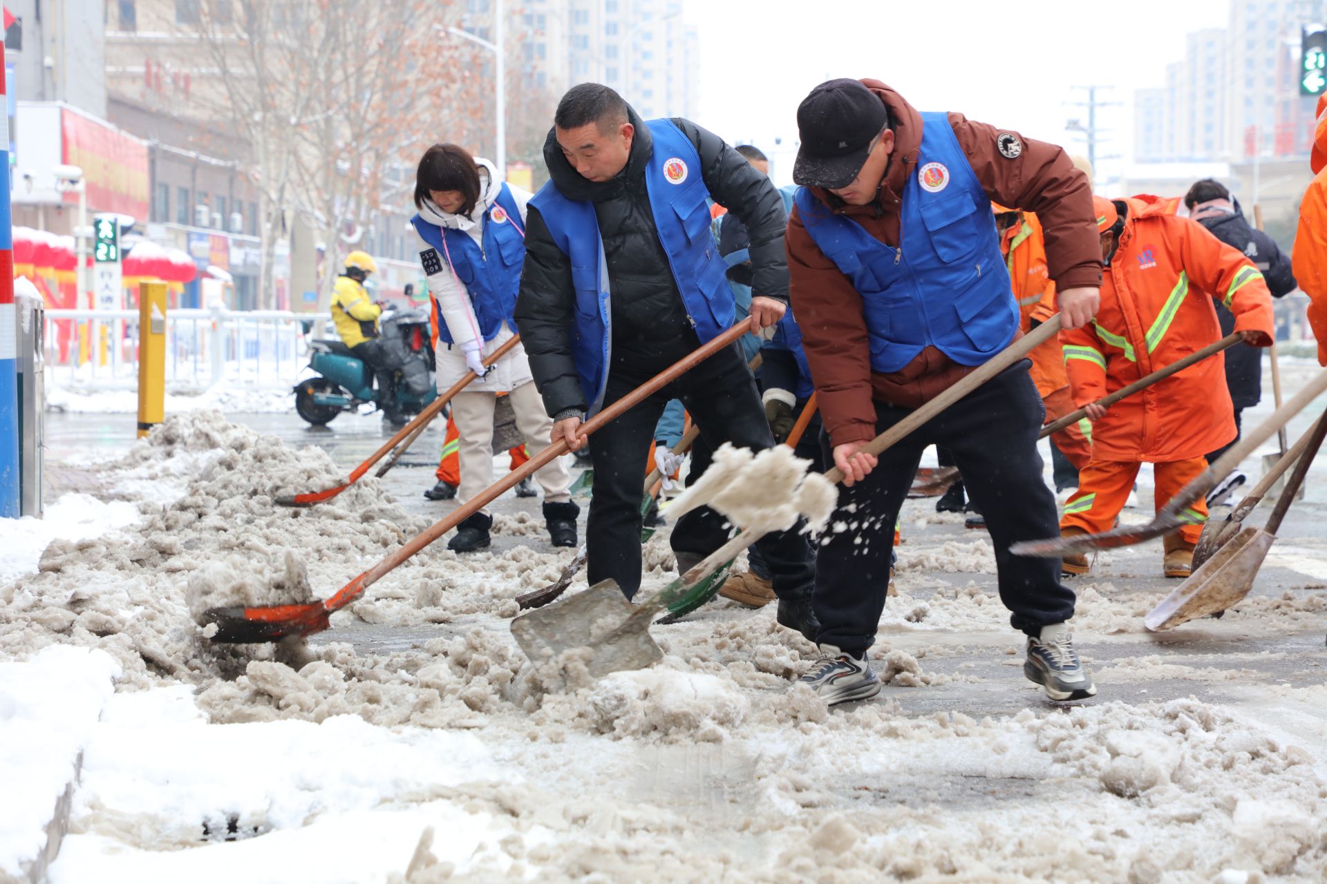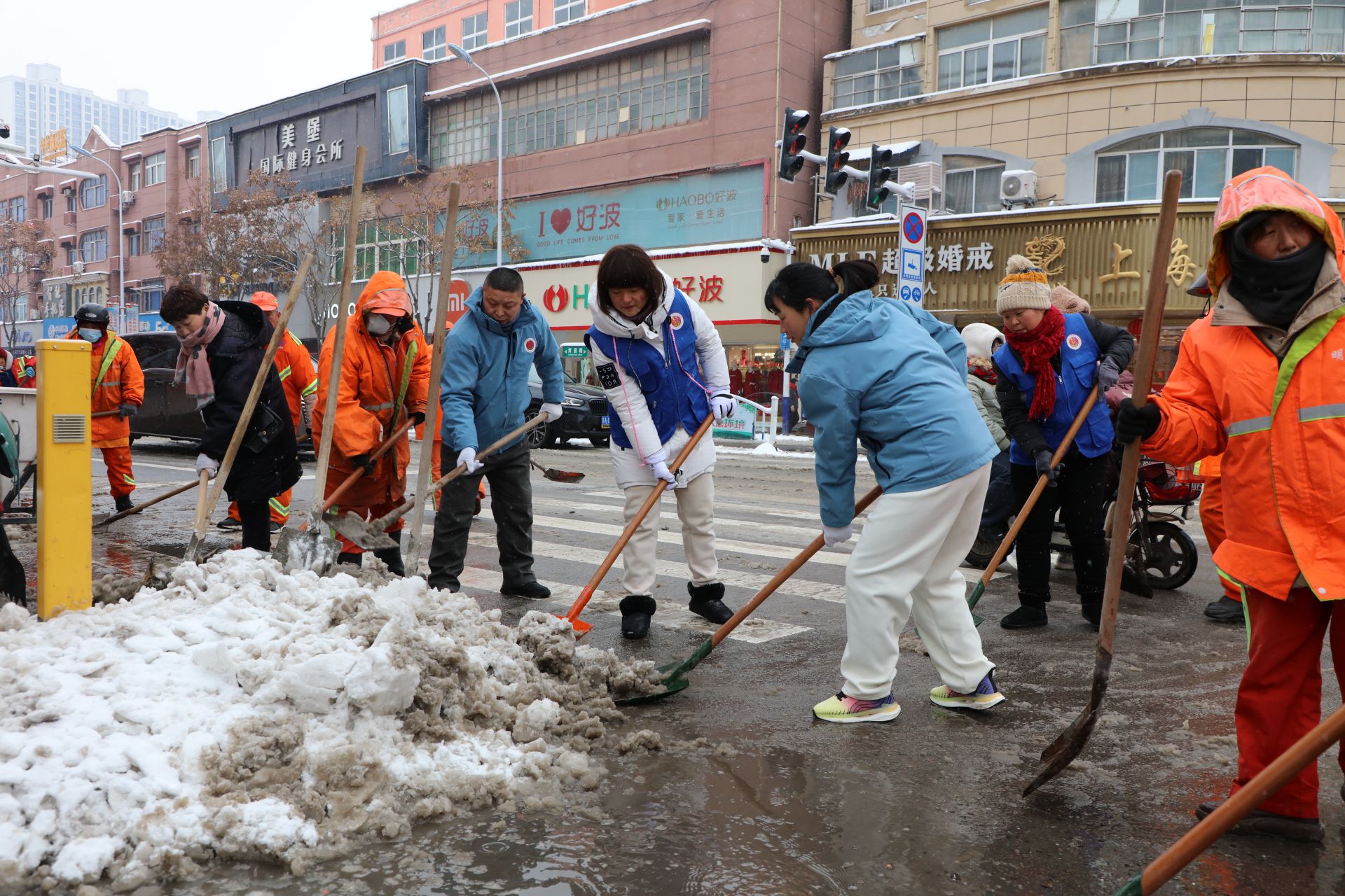 寒冷的天氣沒有阻擋志愿者志愿服務的熱情,到達指定地點后,大家通力配合,鉚足干勁,領(lǐng)取了掃帚、鐵鏟等除雪工具后就立刻投入到了清雪工作中。大家齊心協(xié)力用溫暖融化冰雪,用實際行動踐行初心,經(jīng)過辛勤勞動,路段積雪全部清掃完畢,為老百姓安全出行帶來便利和保障。