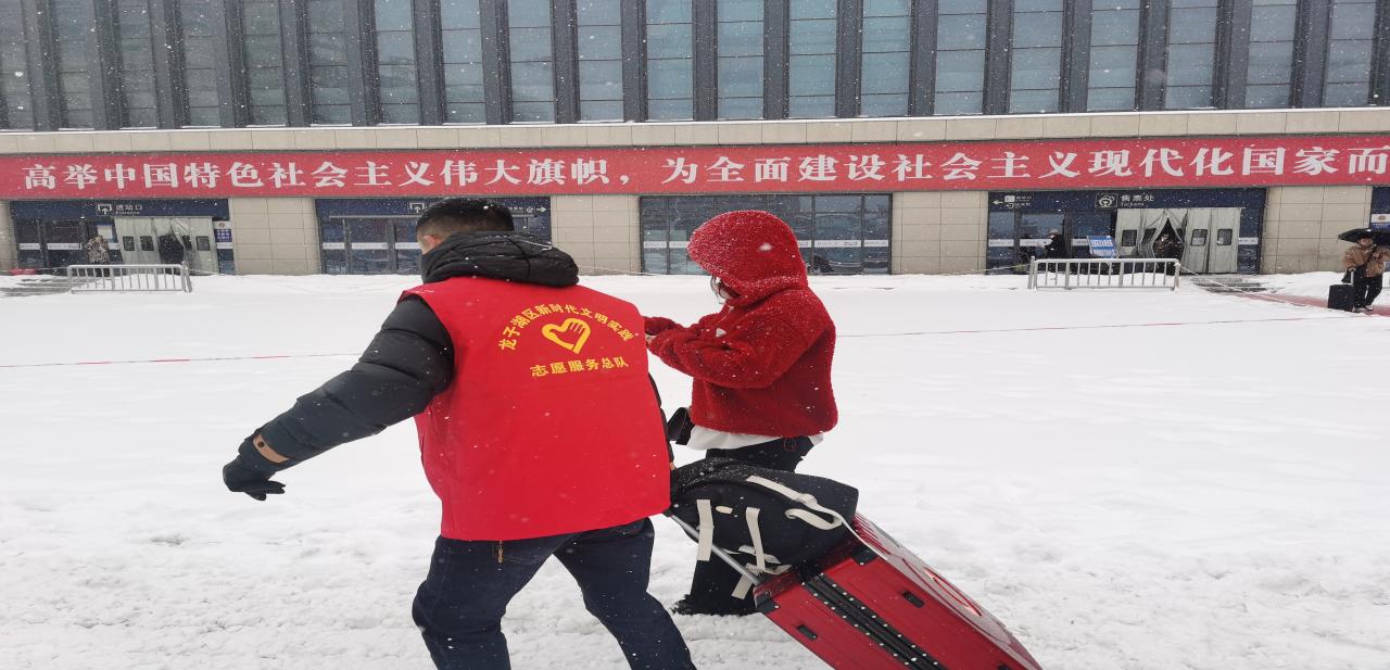 臨近春節(jié),大雪將城市裝扮的銀裝素裹,但是厚厚的積雪阻礙不了治淮街道志愿者的熱情,外出務(wù)工人員紛紛踏上返鄉(xiāng)的道路,在蚌埠火車站有一群“紅馬甲”格外的醒目,他們就是龍子湖區(qū)治淮街道“學(xué)雷鋒”志愿服務(wù)隊。