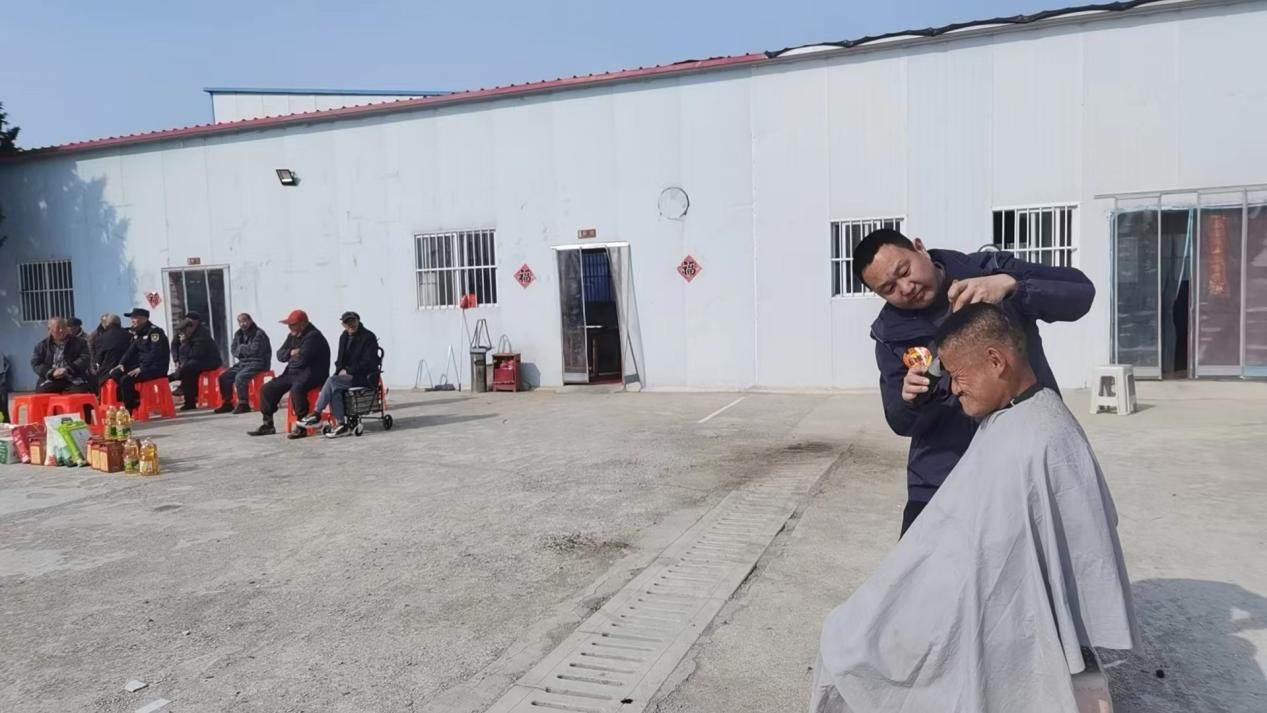 “這個發(fā)型我滿意,謝謝你們,小伙子這手藝真好!”在固鎮(zhèn)縣谷陽鎮(zhèn)敬老院里平時比較講究發(fā)型的老人徐家勝,對剛幫他理完發(fā)的戰(zhàn)旗志愿者協(xié)會志愿者常磊贊不絕口。