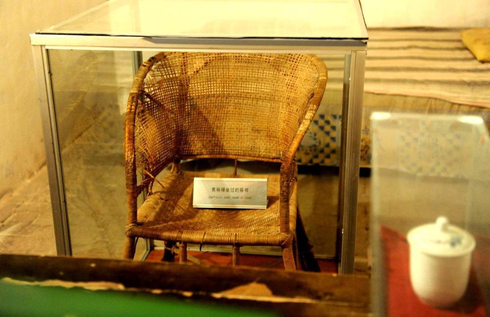 ?河南省蘭考縣焦裕祿同志紀(jì)念館內(nèi)焦裕祿曾用過的藤椅(2014年5月5日攝)。新華社記者 朱祥 攝