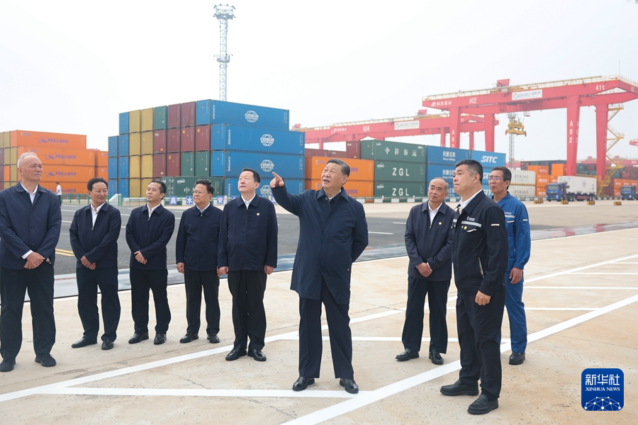 22日下午,習(xí)近平首先來到日照港考察。日照港是重要的能源和大宗原材料中轉(zhuǎn)基地,近年來推進(jìn)智慧化、綠色化建設(shè),建成順岸開放式全自動(dòng)化集裝箱碼頭。習(xí)近平聽取山東省港口發(fā)展建設(shè)和日照港規(guī)劃布局等情況介紹,并察看全自動(dòng)化集裝箱碼頭作業(yè)場(chǎng)景。他說,日照港是改革開放后新建的港口,近年來推進(jìn)科技創(chuàng)新,將傳統(tǒng)港口改造升級(jí)為現(xiàn)代化港口,不僅貨物吞吐量躋身全國(guó)前列,還積累了通過傳統(tǒng)產(chǎn)業(yè)改造升級(jí)發(fā)展新質(zhì)生產(chǎn)力的經(jīng)驗(yàn),值得肯定。習(xí)近平親切慰問港口科技工作者、運(yùn)營(yíng)人員、航運(yùn)人員,希望大家再接再厲、繼續(xù)奮斗,推動(dòng)日照港管理運(yùn)營(yíng)更上一層樓。