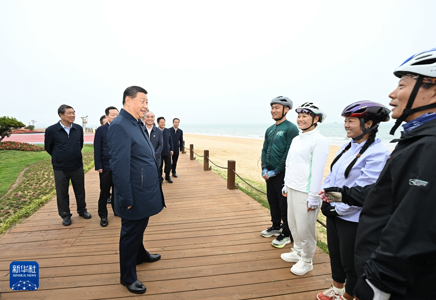 隨后,習(xí)近平考察了日照市陽(yáng)光海岸綠道。近年來,日照市對(duì)沿海裸露場(chǎng)地及岸線破損處進(jìn)行生態(tài)修復(fù),建成約28公里的陽(yáng)光海岸綠道,為市民和游客提供了運(yùn)動(dòng)休閑好去處。習(xí)近平聽取綠道整體建設(shè)情況介紹,察看修復(fù)治理后的海岸線生態(tài)環(huán)境,了解當(dāng)?shù)厣?jí)文旅產(chǎn)業(yè)、提升人民生活品質(zhì)的做法和成效,并不時(shí)同市民和游客親切交流。他指出,建設(shè)綠道應(yīng)市民所需,是得民心之事。推進(jìn)中國(guó)式現(xiàn)代化,就是要讓人民群眾的生活越來越好。生態(tài)環(huán)境好,老百姓就多了一份實(shí)實(shí)在在的幸福感。大家要一起動(dòng)手,共同建設(shè)和呵護(hù)美好家園。