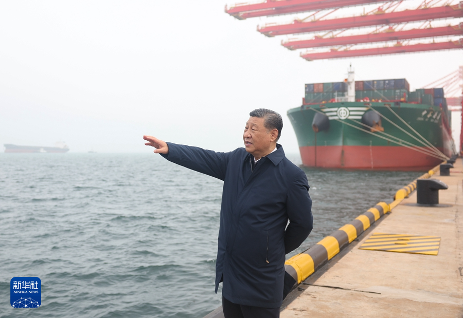 5月22日至24日,中共中央總書記、國(guó)家主席、中央軍委主席習(xí)近平在山東考察。這是22日下午,習(xí)近平在日照港考察。 新華社記者 鞠鵬 攝