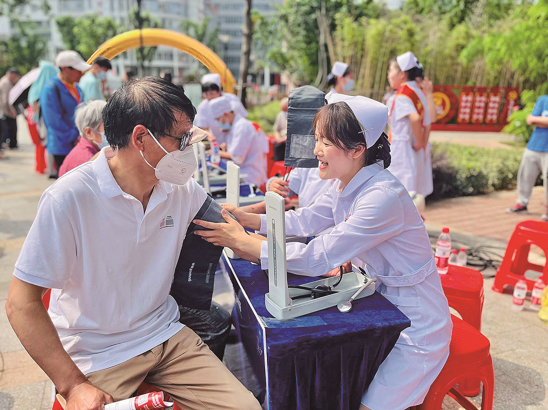 文明蚌埠網(wǎng)訊 5月18日上午,蚌埠市科學(xué)宮廣場,市民在便民志愿服務(wù)臺測量血壓。當(dāng)天,蚌埠市2023年職業(yè)教育活動周便民志愿服務(wù)暨技能展示活動在此拉開帷幕。