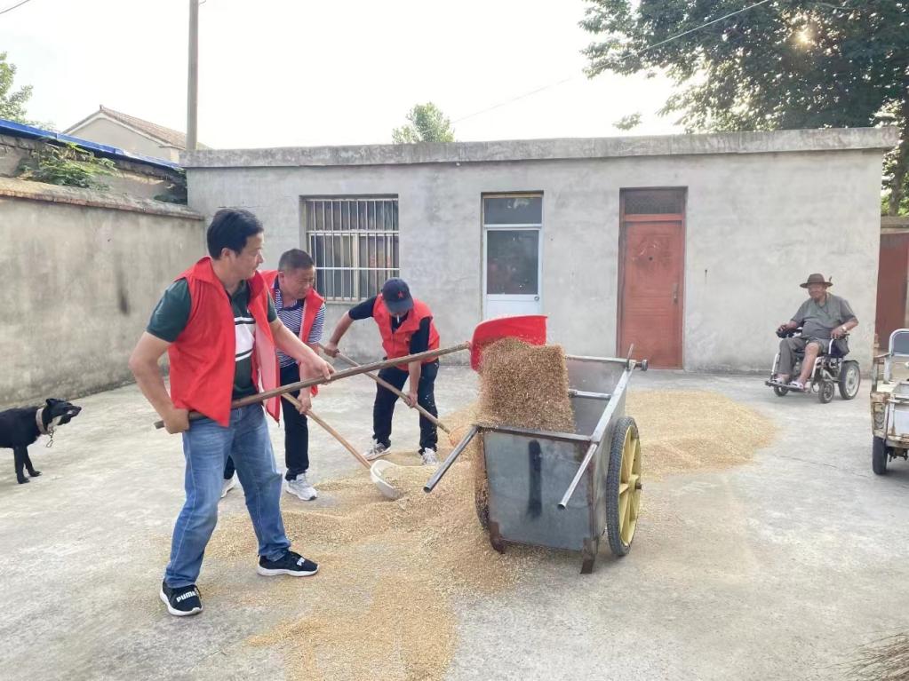 志愿服務(wù)隊先后去了朱崗村和何巷社區(qū),在村干部的陪同下走進兒女不在身邊以及勞動力少的困難農(nóng)戶家,幫助他們晾曬剛收割回來的小麥。