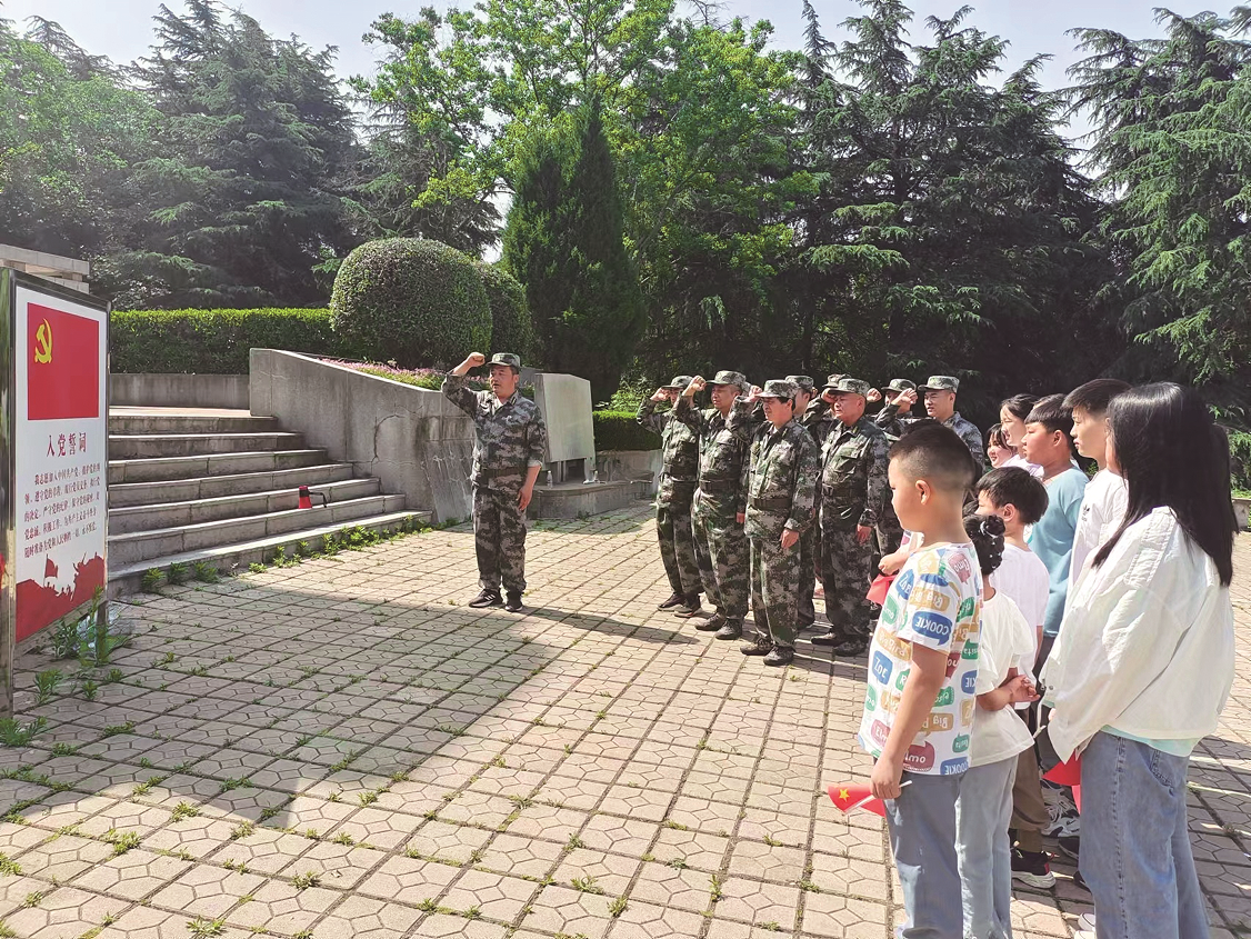 “我們要繼承革命先烈遺志,做一個(gè)積極向上、身體健康、熱愛生活、熱愛祖國、情趣高尚的青少年?!痹诎霾焊锩鼩v史陳列館,彭巷村的孩子們與退役軍人志愿者服務(wù)隊(duì)成員列隊(duì)行禮,向烈士們致以崇高敬意。一直以來,服務(wù)隊(duì)多次組織轄區(qū)青少年開展升國旗儀式、祭掃革命烈士等活動(dòng)。