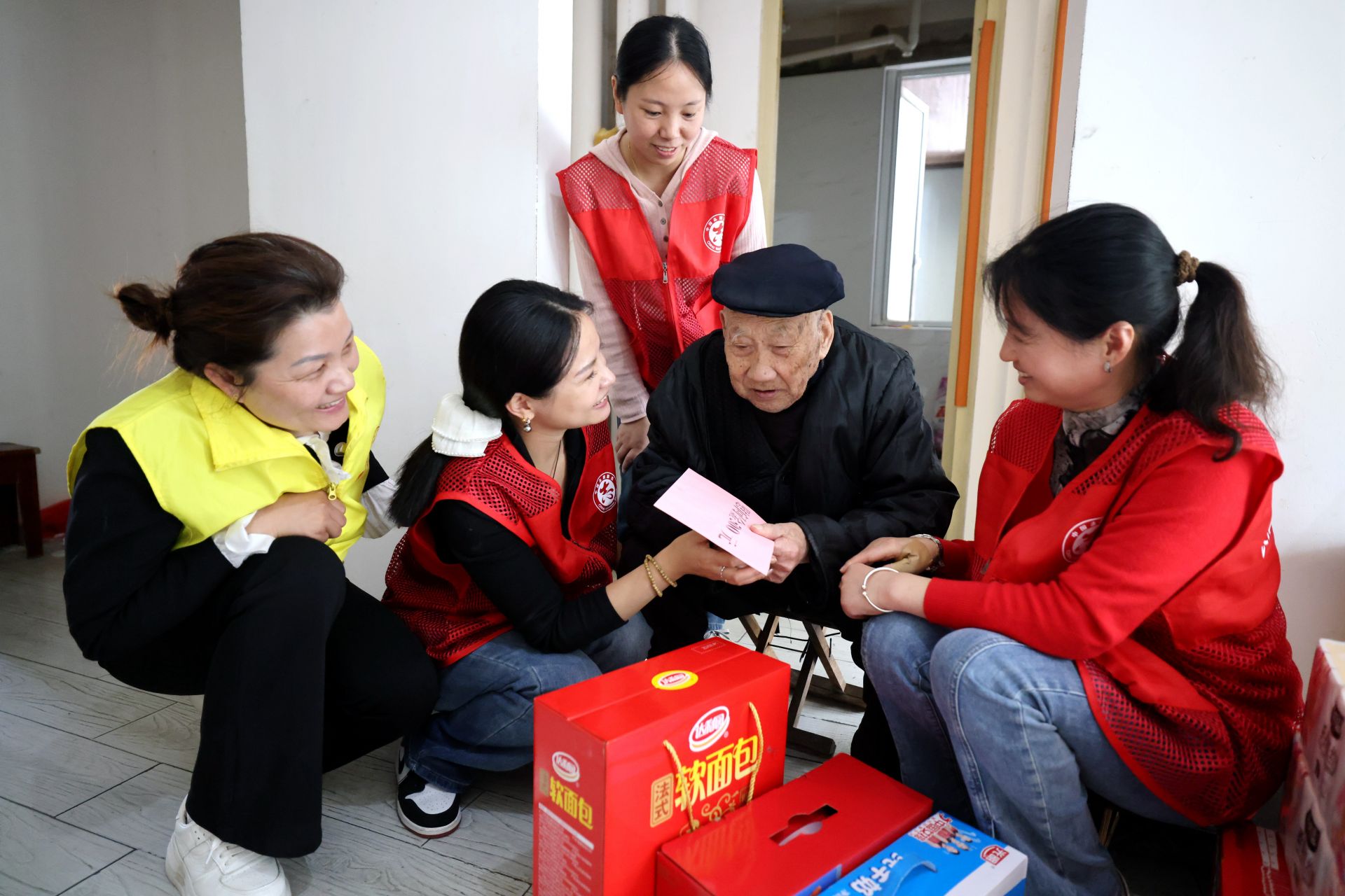 10月11日,蚌埠經(jīng)開(kāi)區(qū)長(zhǎng)淮衛(wèi)鎮(zhèn)西片區(qū)民政服務(wù)站志愿者來(lái)到淮光嘉苑社區(qū)106歲老人陳兆電家中,為老人送上溫暖祝福和貼心問(wèn)候。
