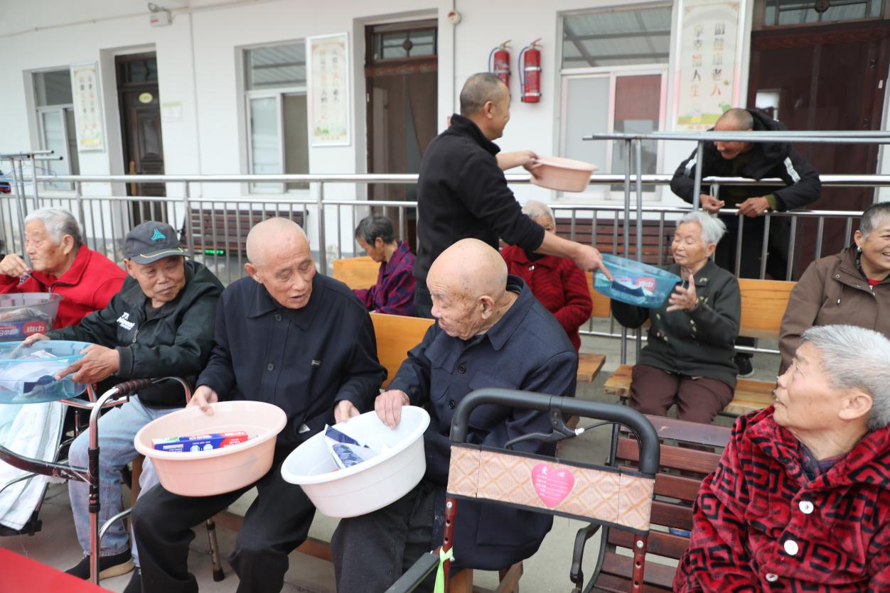 演出完畢,志愿者對老人們進行了現(xiàn)場慰問活動,為老人們發(fā)放毛巾、牙具等生活用品,并對他們的生活進行關(guān)懷,還耐心叮囑老人要保重身體,樂觀生活。