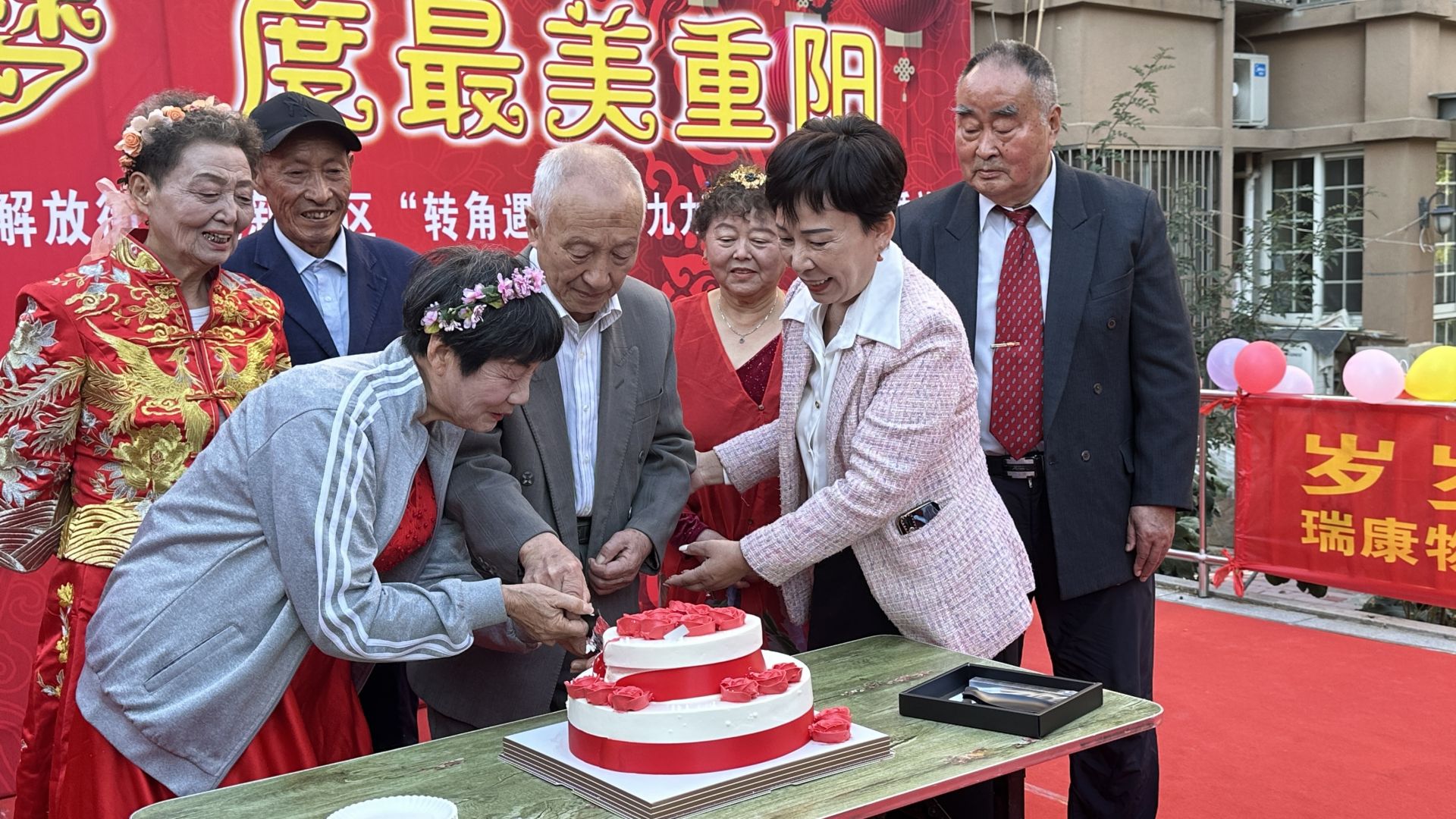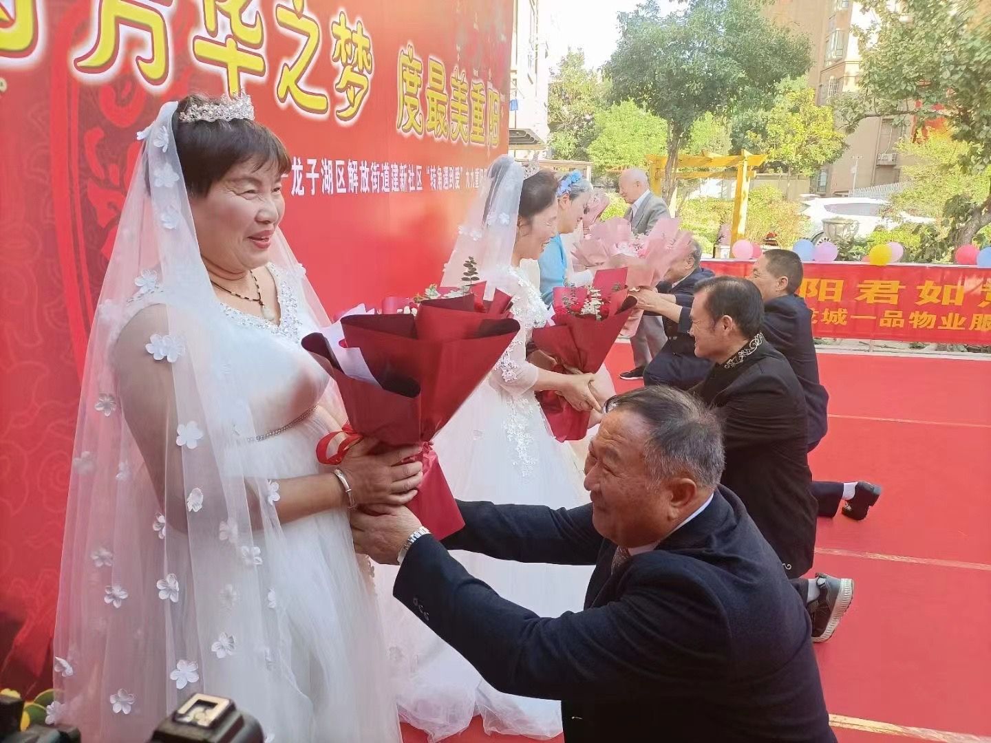 蚌埠文明網(wǎng)訊(融媒體記者 何沛 文/圖)最讓人羨慕的愛情莫過于牽著彼此的手,從青絲到白發(fā),一起去看日升日落,云卷云舒。10月20日下午,由龍子湖區(qū)民政局聯(lián)合建新社區(qū)舉辦的“圓芳華之夢 度最美重陽”龍子湖區(qū)“轉(zhuǎn)角遇到愛”九九重陽銀發(fā)集體婚禮在解放街道建新社區(qū)新時代文化長廊舉行。10對銀發(fā)夫婦攜手相伴,以愛之名,在眾人的見證下“完婚”,不僅大聲說出愛的“告白”,重溫愛的浪漫,更用實際行動踐行移風易俗。