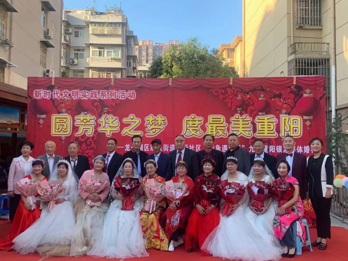 據(jù)介紹,龍子湖區(qū)作為全省第二批婚俗改革實驗區(qū),通過婚俗改革,積極推進結婚頒證服務、婚俗禮儀簡約適度、集體婚禮等制度創(chuàng)新。此次活動以大力倡導移風易俗、婚事簡辦的契機,在重陽節(jié)來臨之際,讓老人們度過一個特別的節(jié)日,進一步弘揚中華民族優(yōu)秀傳統(tǒng)文化以及敬老愛老的傳統(tǒng)美德。同時,借助此次集體婚禮,向子女、晚輩展現(xiàn)愛情的真諦。向社會發(fā)出倡議,移風易俗,樹立良好的婚禮觀念,弘揚社會主義文明新風。