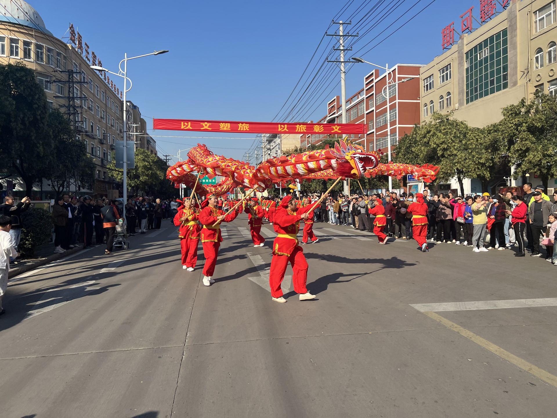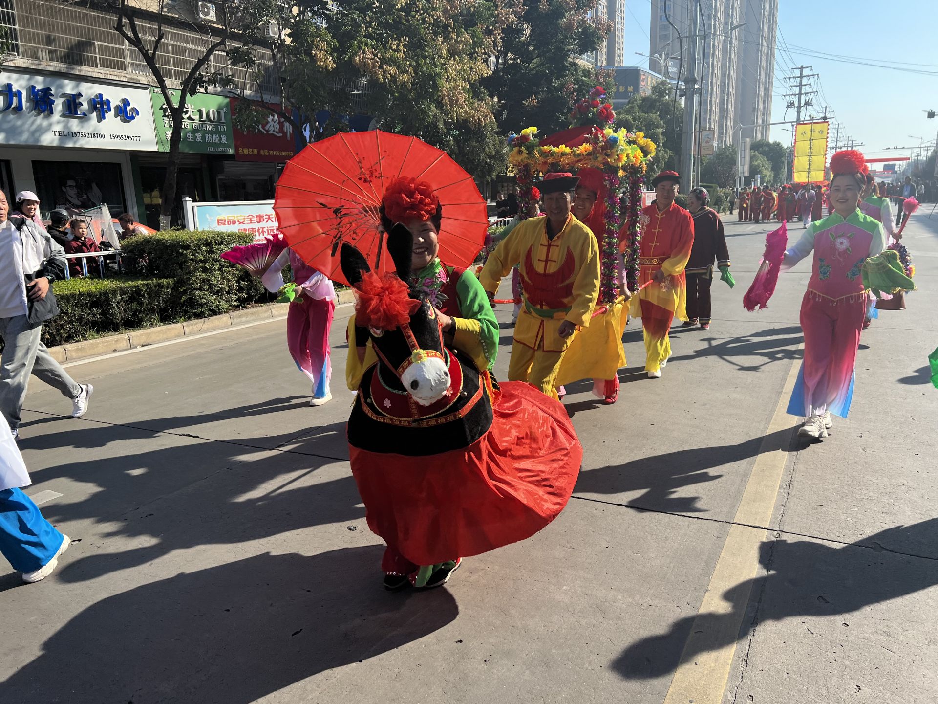 快看,唐僧師徒走來了,沙師弟左手降妖寶仗,右手九齒釘耙,好不滑稽。國(guó)家級(jí)非物質(zhì)文化遺產(chǎn)花鼓燈,舞龍、舞獅子、旱船等多種民俗表演你方唱罷我登場(chǎng),禹王路成了流動(dòng)的舞臺(tái),藝人們拿出各自的絕活,邊走邊表演,每一個(gè)路段的觀眾都能看到完整的節(jié)目,不可謂不神奇,視覺和聽覺的盛宴讓人嘖嘖稱奇。道路兩側(cè)人山人海摩肩接踵,男女老少齊聚,紛紛拿出手機(jī)錄下這精彩的一刻。
